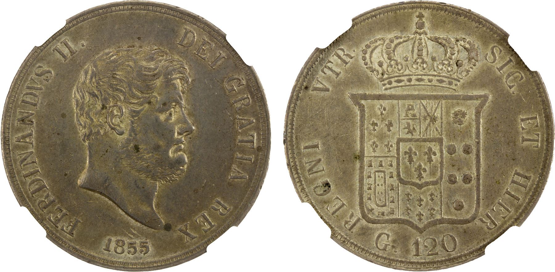 NAPLES & SICILY: Ferdinando II, 1830-1859, AR 120 grana, 1855, NGC AU53