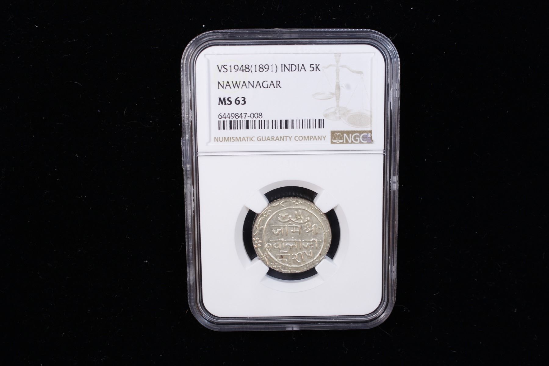 NAWANAGAR: Vibhaji, 1852-1894, AR 5 kori, VS1948, KM-23, wonderful lustrous mint state example! NGC graded MS63.
