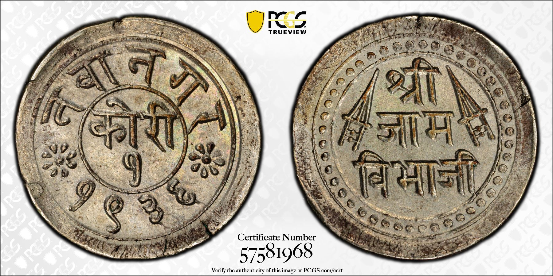 NAWANAGAR: Vibhaji, 1852-1894, AR kori, VS1936 (1879), PCGS MS62