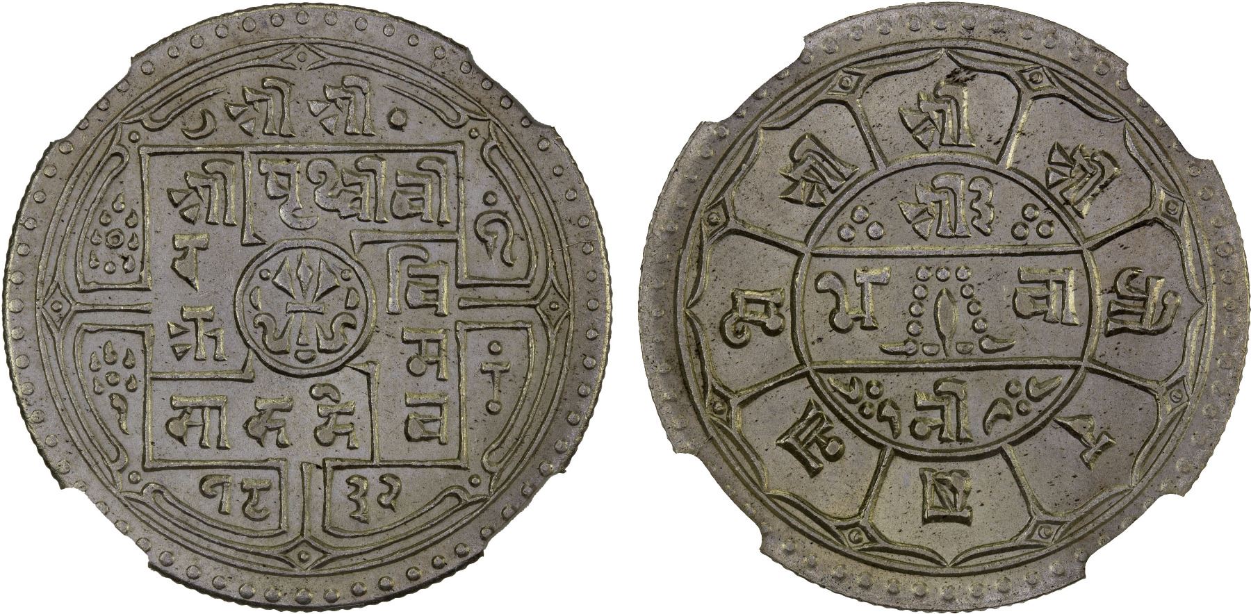 NEPAL: Prithvi Bir Bikram, 1881-1911, AR 2 mohars, SE1832 (1910), NGC MS63