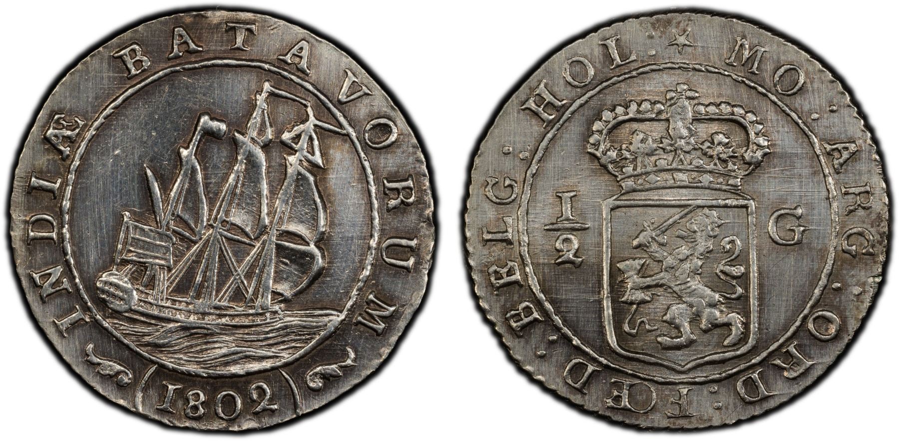 NETHERLANDS EAST INDIES: Batavian Republic, AR 1/2 gulden, 1802, PCGS Unc details