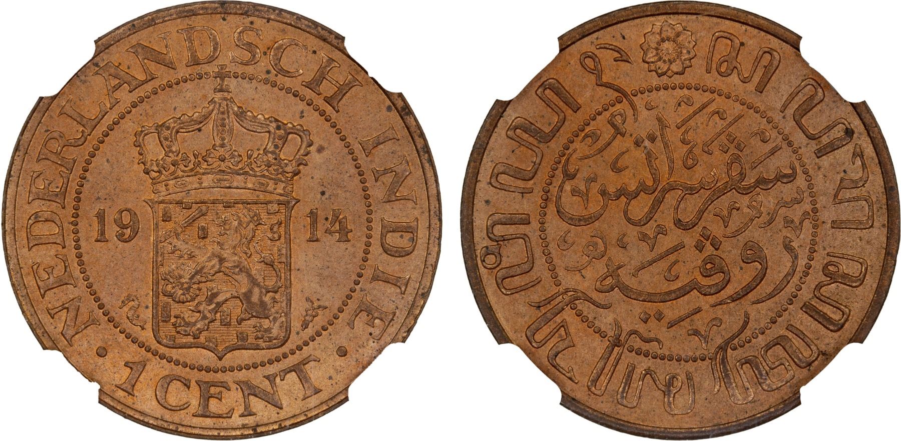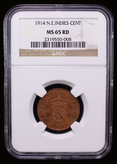 NETHERLANDS EAST INDIES: Dutch Colony, AE cent, Utrecht, 1914, KM-315, 100% full red surfaces, NGC graded MS65 RD, ex The 1914 Collection.