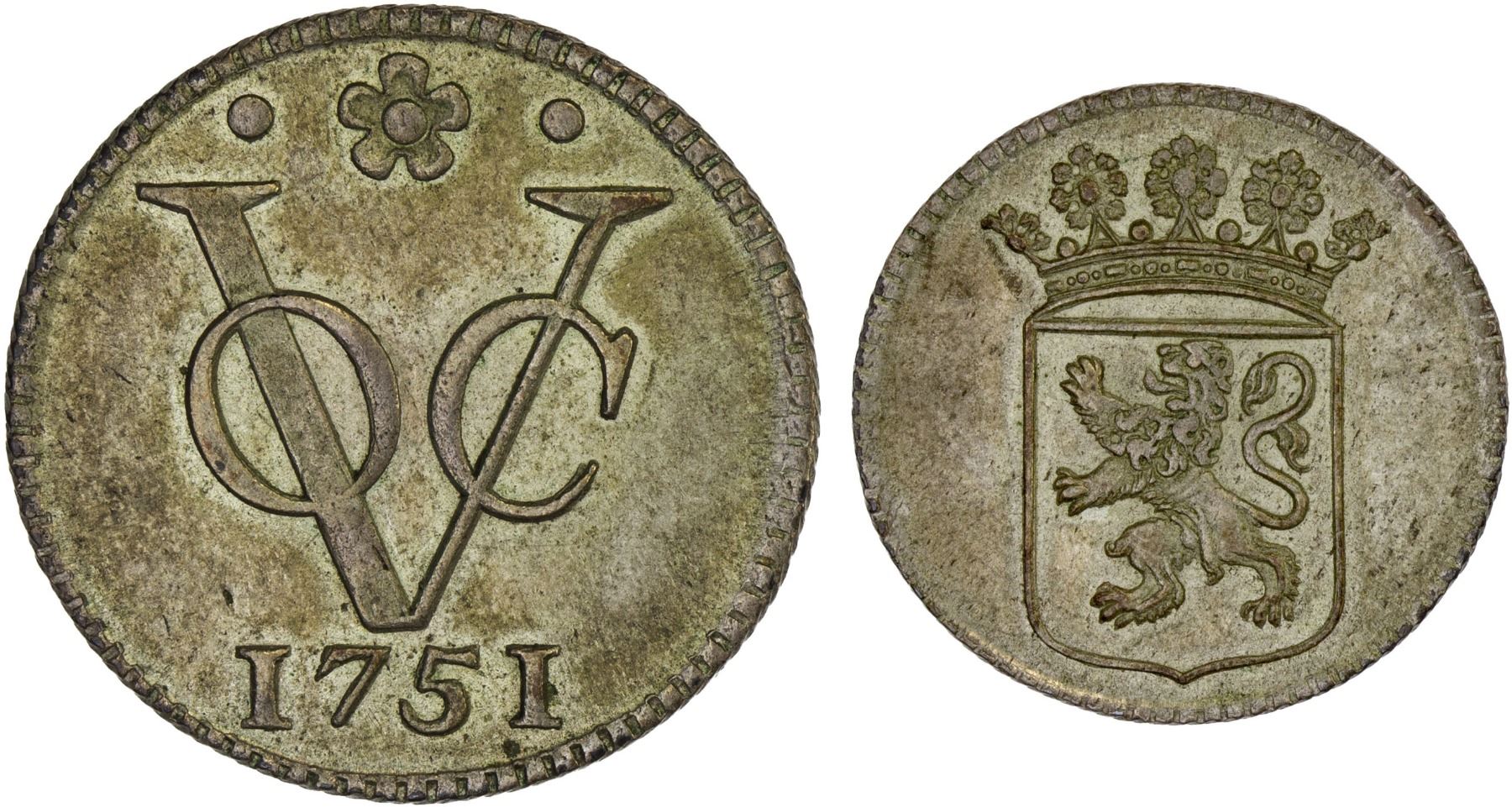 NETHERLANDS EAST INDIES: Holland, AR duit, 1751, Choice XF