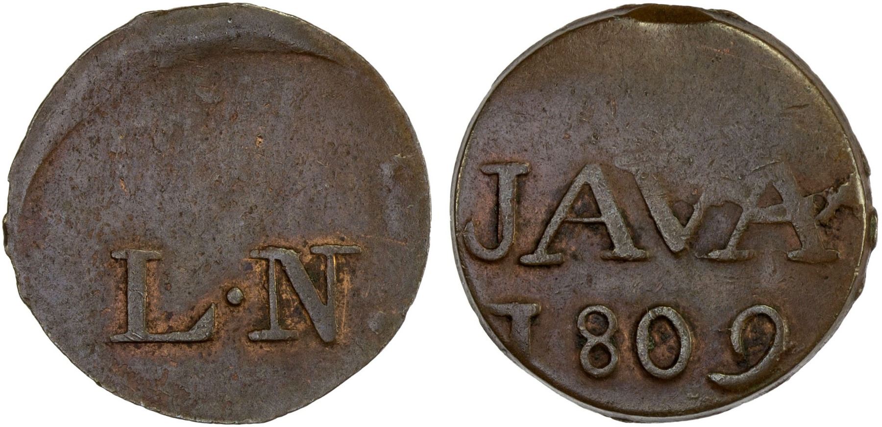 NETHERLANDS EAST INDIES: Louis Napoleon, 1806-1810, AE doit, 1809, XF-AU