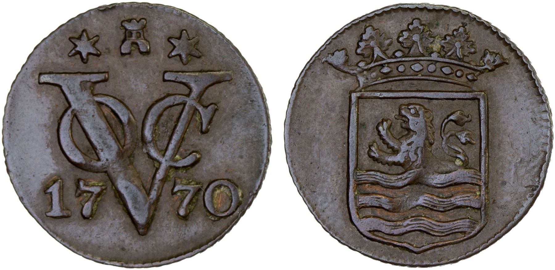 NETHERLANDS EAST INDIES: Zeeland, AE 1/2 duit, 1770, XF