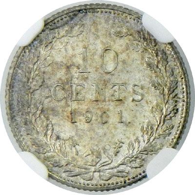 NETHERLANDS: Wilhelmina, 1890-1948, AR 10 cents, 1901, KM-119, Y-23, two year type, NGC graded MS62.
