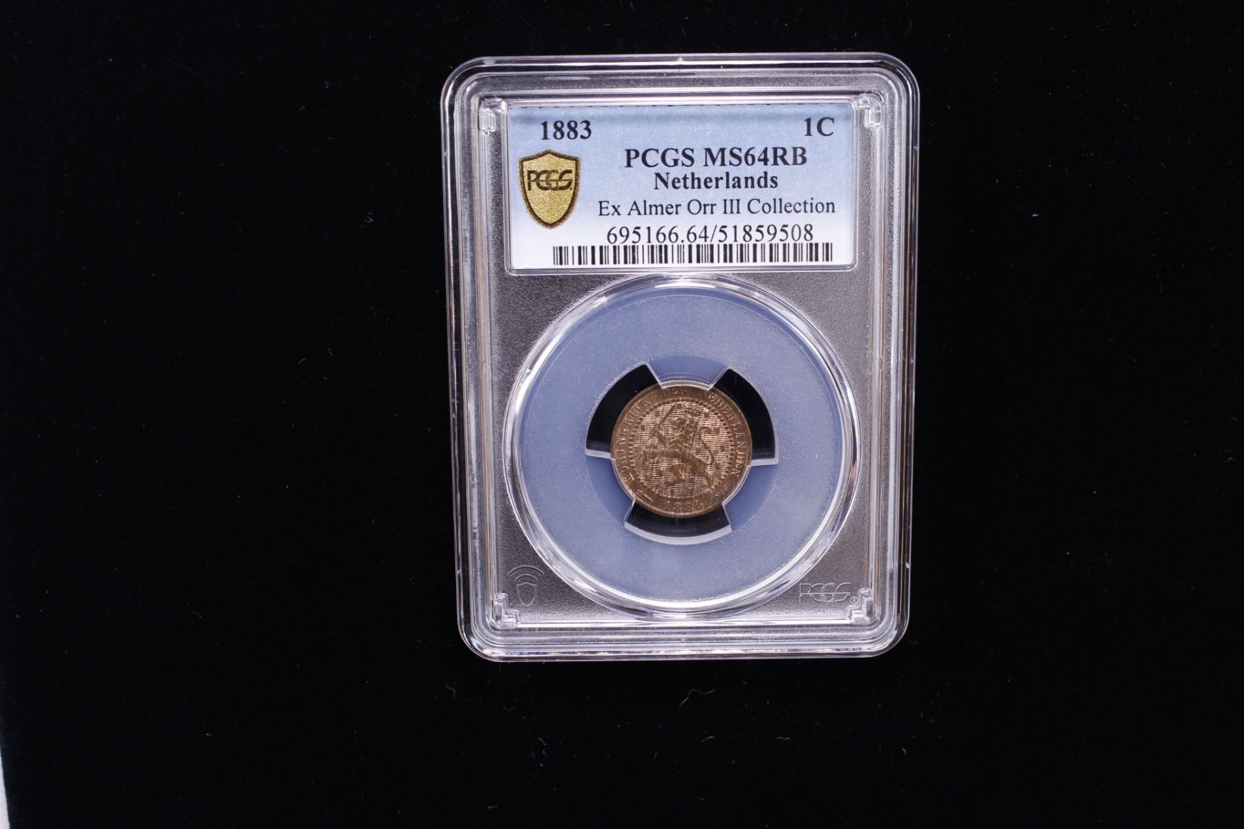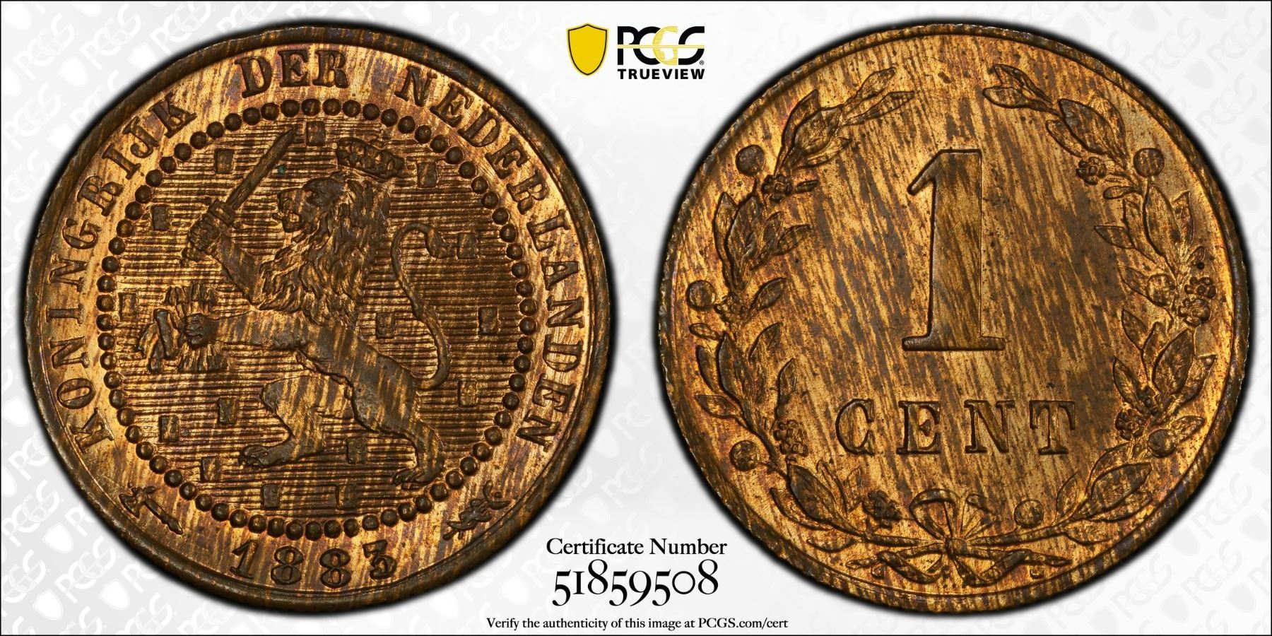 NETHERLANDS: William III, 1849-1890, AE cent, 1883, KM-107, a wonderful example, PCGS graded MS64 RB, ex Almer H. Orr III Collection.