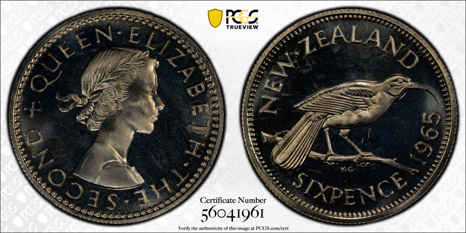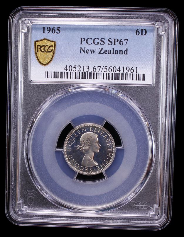 NEW ZEALAND: Elizabeth II, 1952-2022, 6 pence, 1965, PCGS Specimen 67