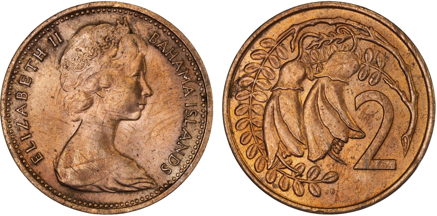 NEW ZEALAND: Elizabeth II, 1952-2022, AE 2 cents, ND (1967), KM-22, mule of Bahamas obverse with reverse of New Zealand, hence undated, a wonderful mint state example, Unc.