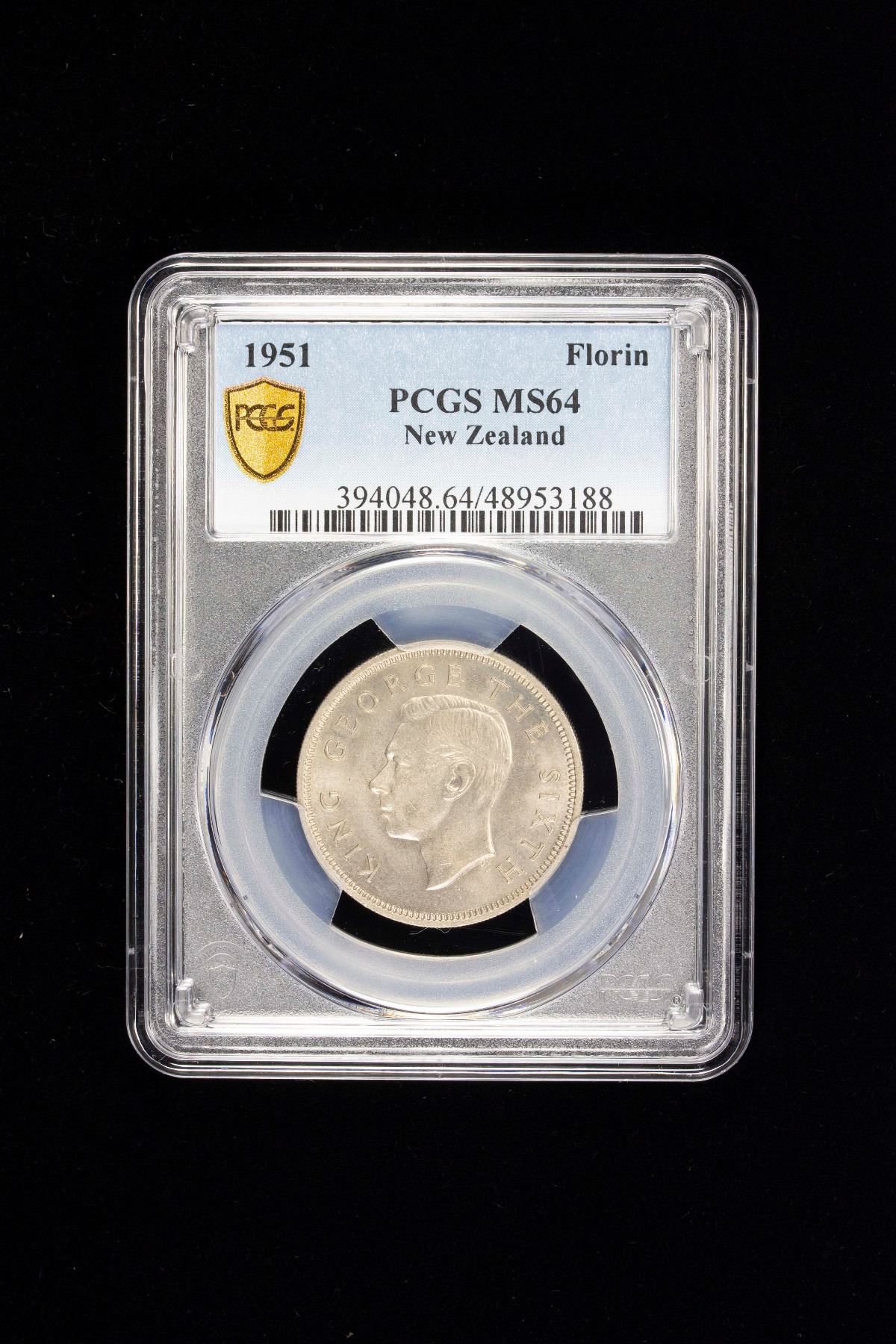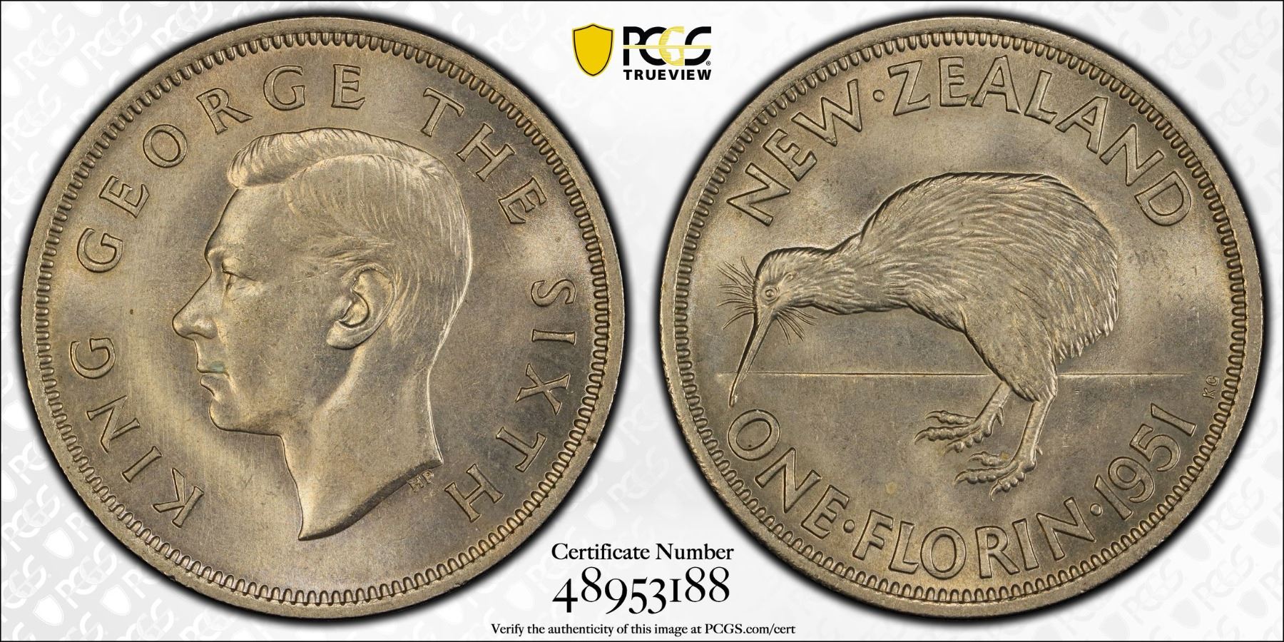 NEW ZEALAND: George VI, 1936-1952, 1 florin, 1951, PCGS MS64