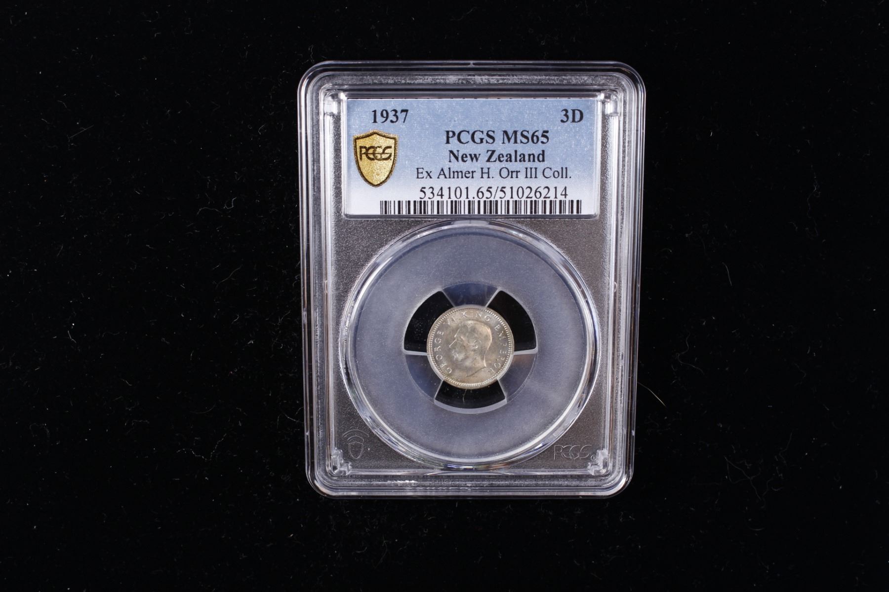 NEW ZEALAND: George VI, 1936-1952, AR 3 pence, 1937, KM-7, a superb example, PCGS graded MS65, ex Almer H. Orr III Collection.