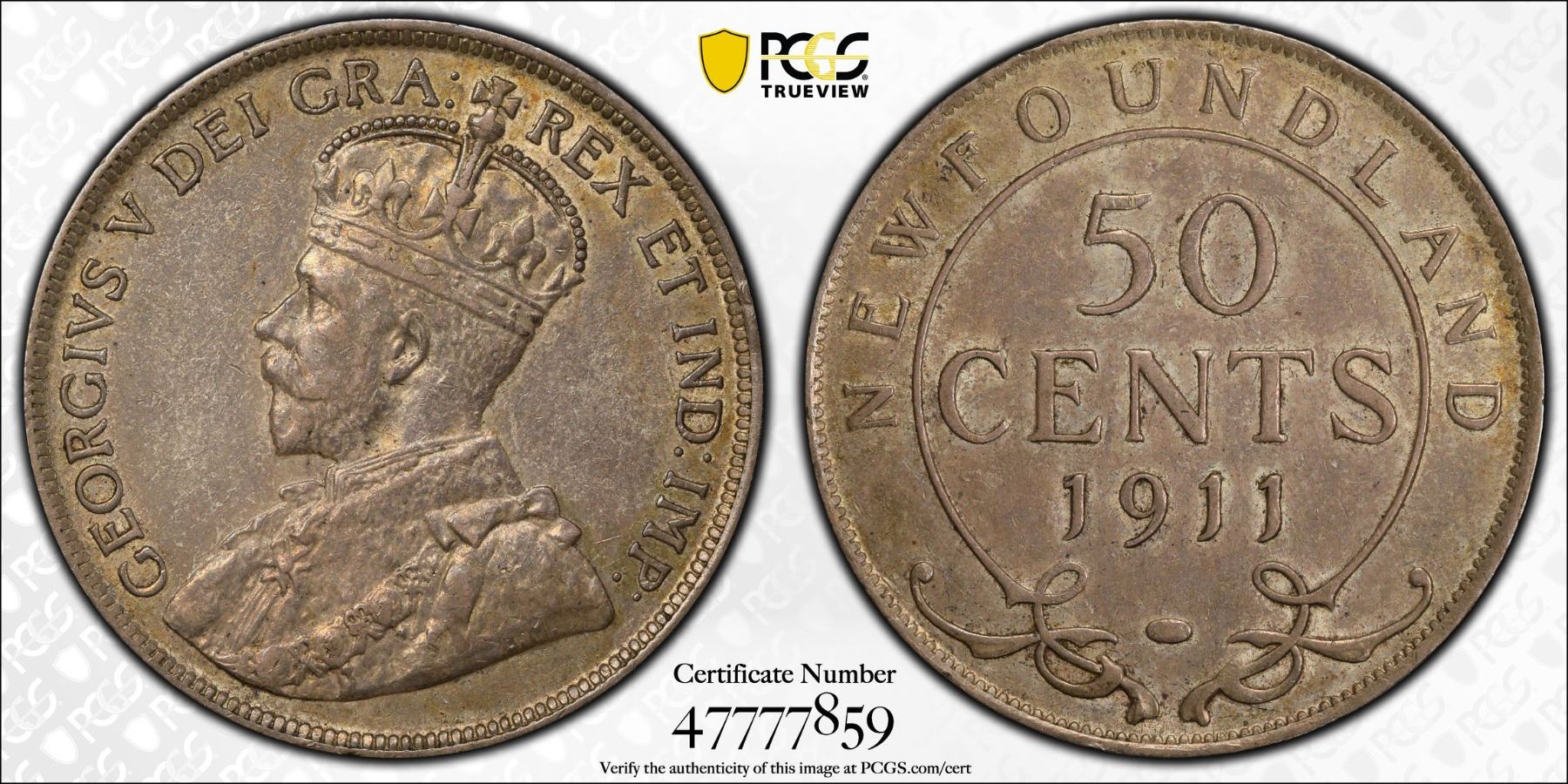 NEWFOUNDLAND: George V, 1910-1936, AR 50 cents, 1911, PCGS AU58
