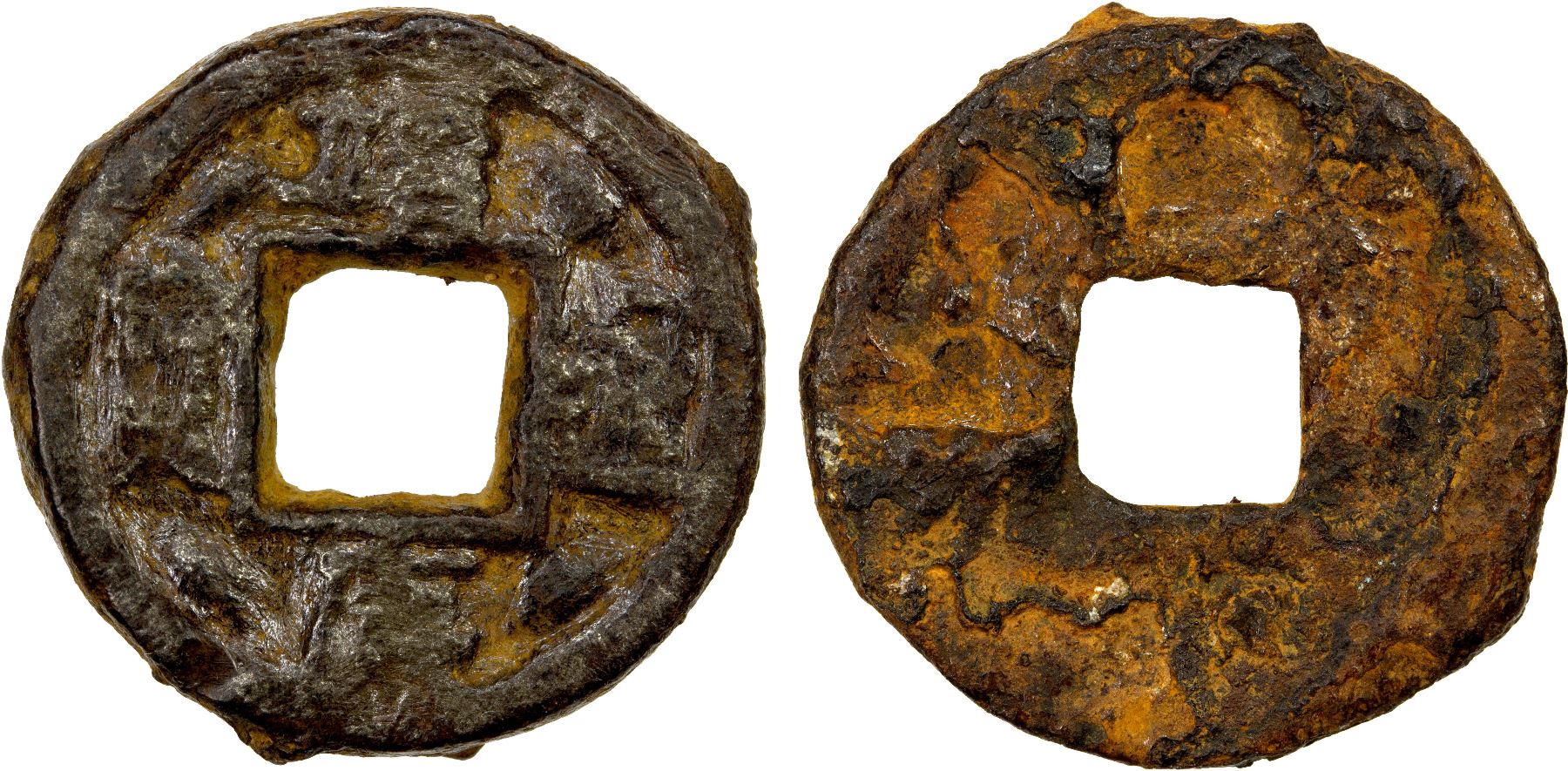 NORTHERN SONG: Jing Kang, 1126-1127, iron cash (5.52g), H-16.518, regular script, scarce reign title (nian hao), Fine to VF, S. In 1126, Qinzong became the ninth and final emperor of the Northern Song after the hurried abdication of his father in the wake of the first Jin (Jurchen) siege of the capital city Bianjing (today's Kaifeng, Henan). Despite an initial peace treaty, his miscalculations led to an even larger invasion the next year and a second, and ultimately successful, siege of Bianjing. In an event since known as the Jingkang Incident, the emperor was captured along with his father and many members of the imperial household, and taken prisoner to the Jin capital in northern Manchuria, where he would spend the rest of his life in humiliation and die a broken man. A younger half-brother of his managed to escape to the south and re-established the court in Lin 'an (Hangzhou, Zhejiang), thus commencing the Southern Song dynasty.