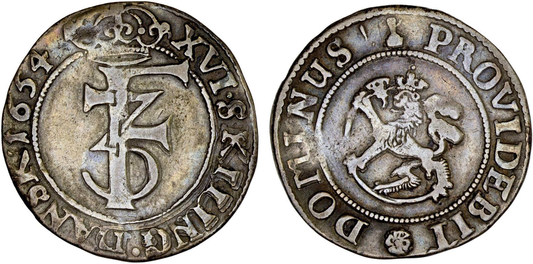 NORWAY: Frederik III, 1648-1670, AR 16 skilling, 1654, KM-32.1, somewhat crude flan, pleasing appearance, F-VF.