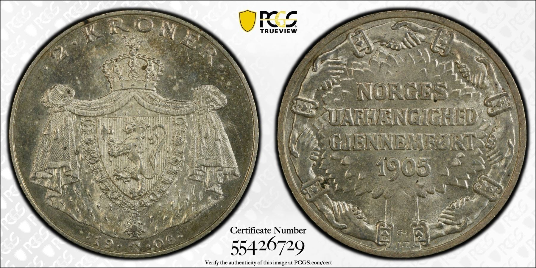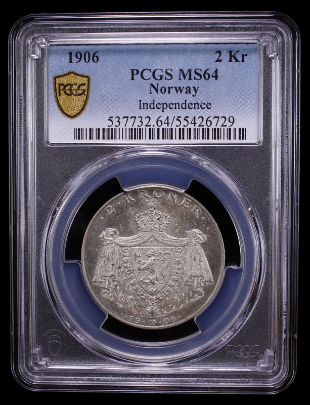 NORWAY: Haakon VII, 1905-1957, AR 2 kroner, 1906, PCGS MS64