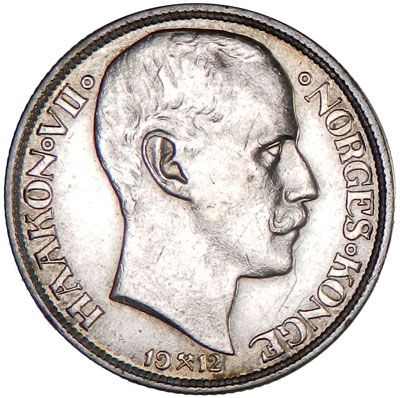 NORWAY: Haakon VII, 1905-1957, AR krone, 1912, KM-369, NM-17, better date, EF, ex Dr. John Lund Collection.