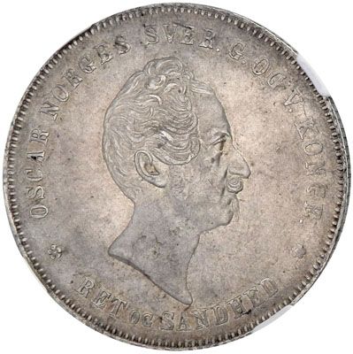 NORWAY: Oscar I, 1844-1859, AR specie daler, 1848, KM-317, NGC graded AU58, ex Dr. John Lund Collection.