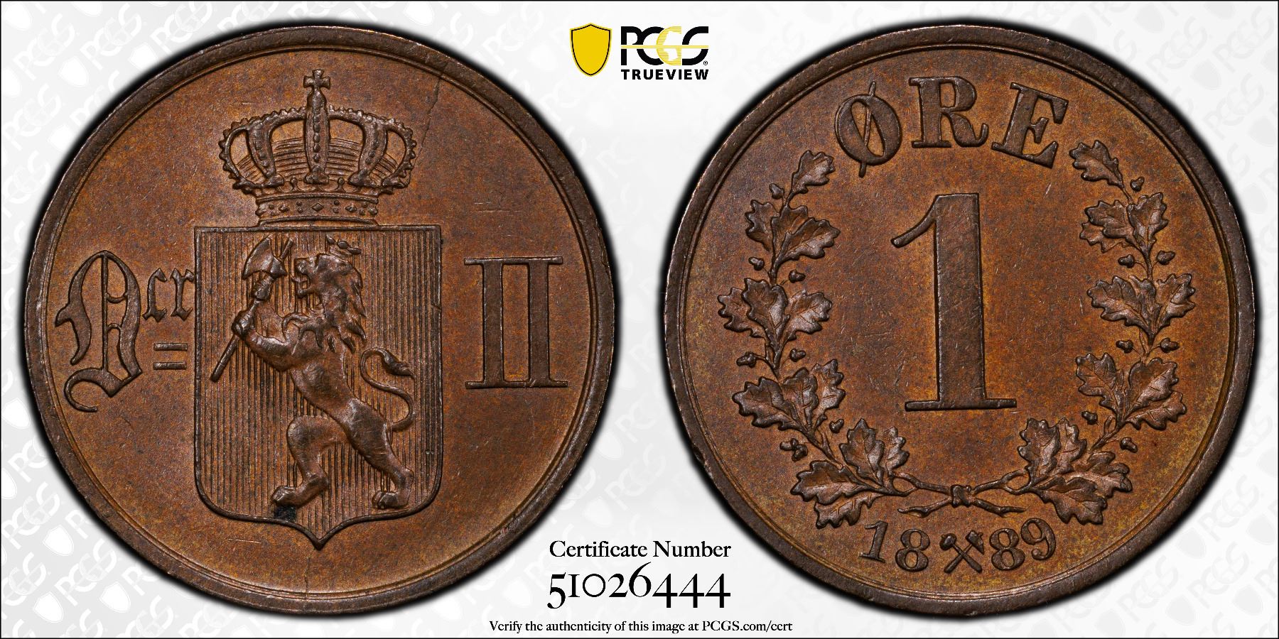 NORWAY: Oscar II, 1872-1905, AE ore, 1889, KM-352, Y-19, a wonderful lustrous example! PCGS graded MS64 BN, ex Almer H. Orr III Collection.