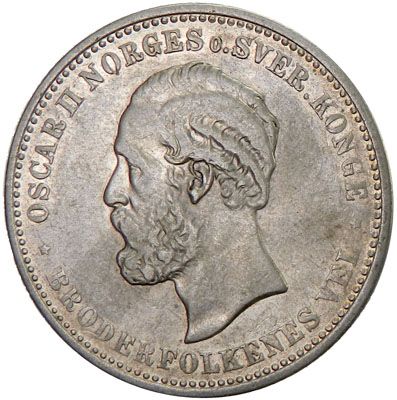 NORWAY: Oscar II, 1872-1905, AR 2 kroner, 1904, KM-359, NM-29, about EF, ex Dr. John Lund Collection.