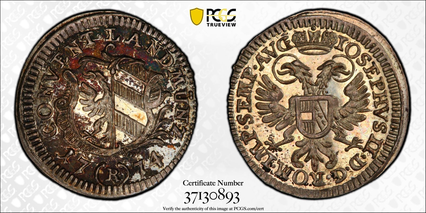 NUREMBERG: Free Imperial City, AR 2½ kreuzer, 1774, KM-369, lovely old toning, PCGS graded MS65.