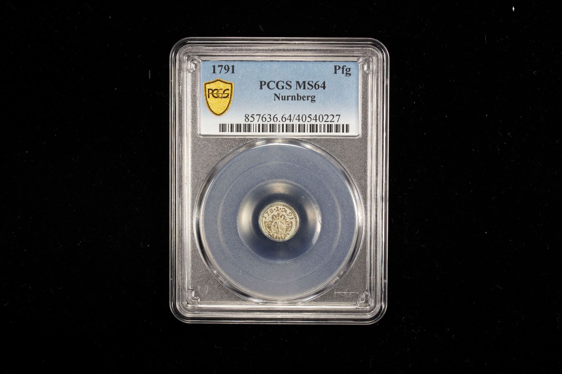 NUREMBERG: Free Imperial City, AR pfennig, 1791, KM-377, a lovely mint state example! PCGS graded MS64.