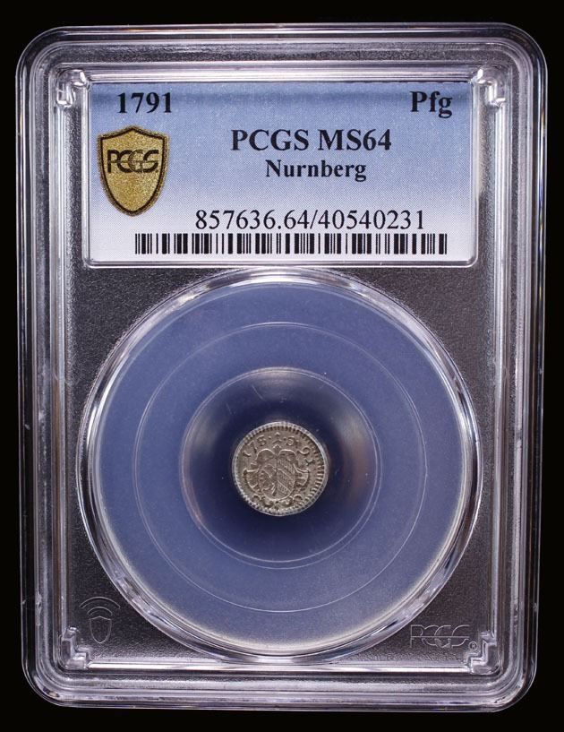 NUREMBERG: Free Imperial City, AR pfennig, 1791, PCGS MS64