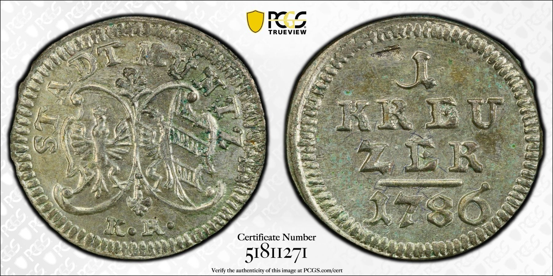 NUREMBERG: Free Imperial City, BI kreuzer, 1786, PCGS MS63