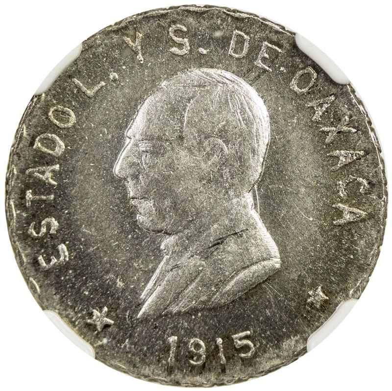 OAXACA: AR 50 centavos, 1915, KM-736, GB-337, Oax-74, incorrectly attributed as KM-735 on holder, well struck coin with superior luster and nice light peripheral tone on reflective surfaces, a superb specimen, highest graded by NGC (April 2016), NGC graded MS65, R-3. There is no listing on CoinArchives that compares with the quality of this coin.