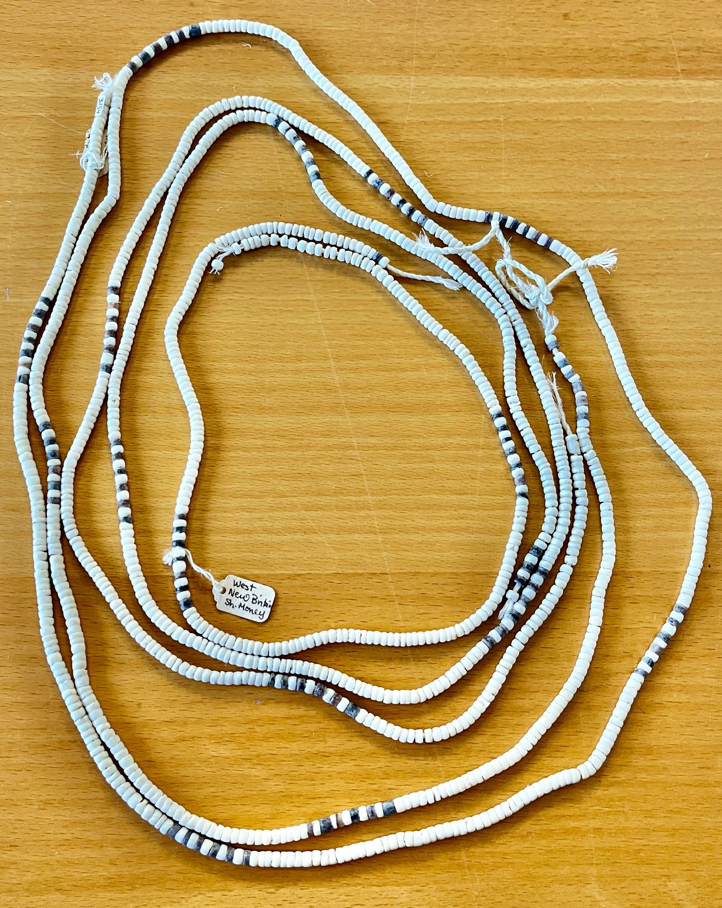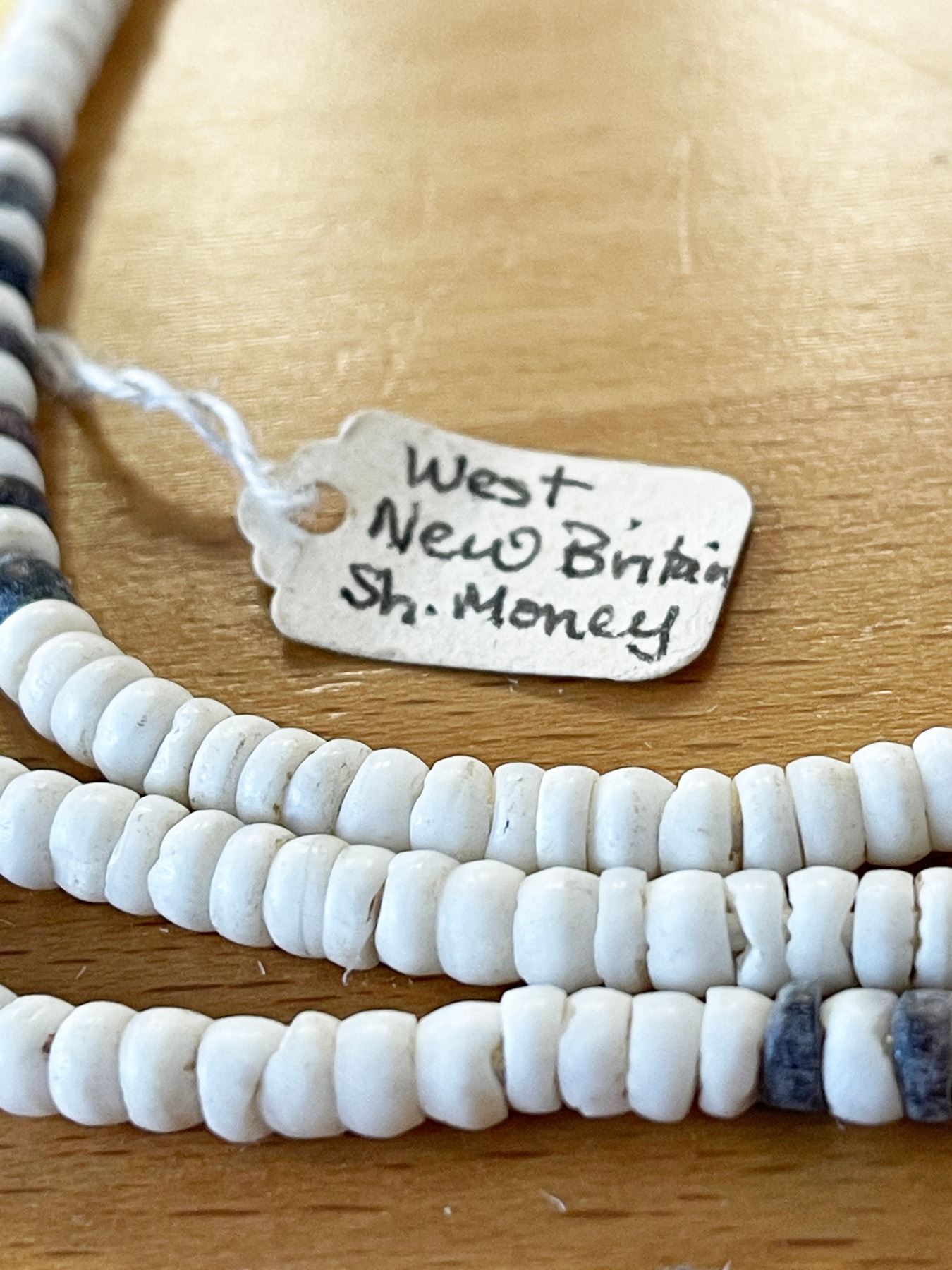 OCEANIA: NEW BRITAIN: shell money, Opitz p.298, consisting of three strings of polished shell beads, each measuring 149cm (53.91g), 136cm (44.38g), and 55cm (18.43g), made in West New Britain, VF, ex Charles Opitz Collection.