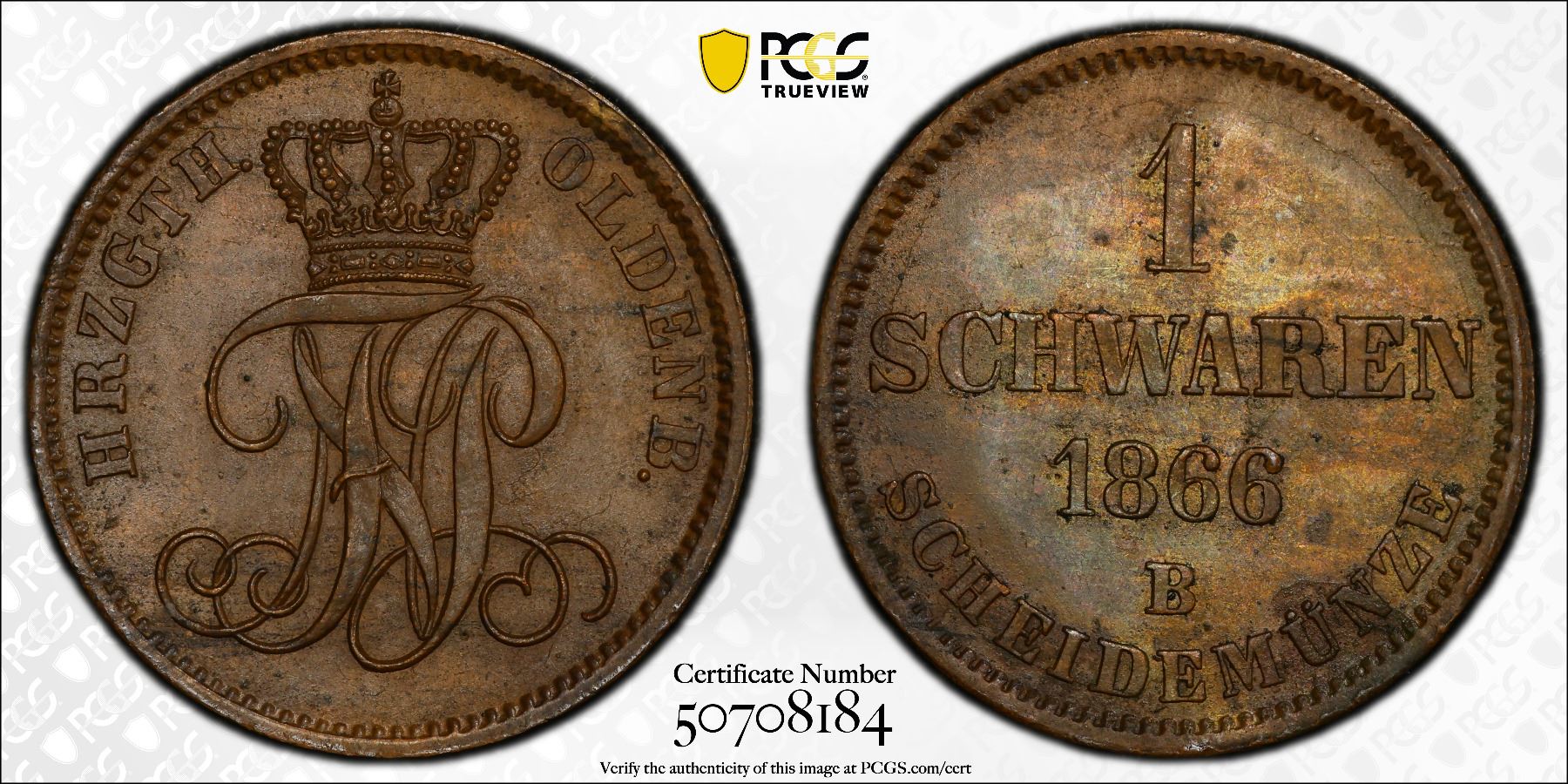 OLDENBURG: Peter II, 1853-1900, AE schwaren, 1866, PCGS MS63 BN