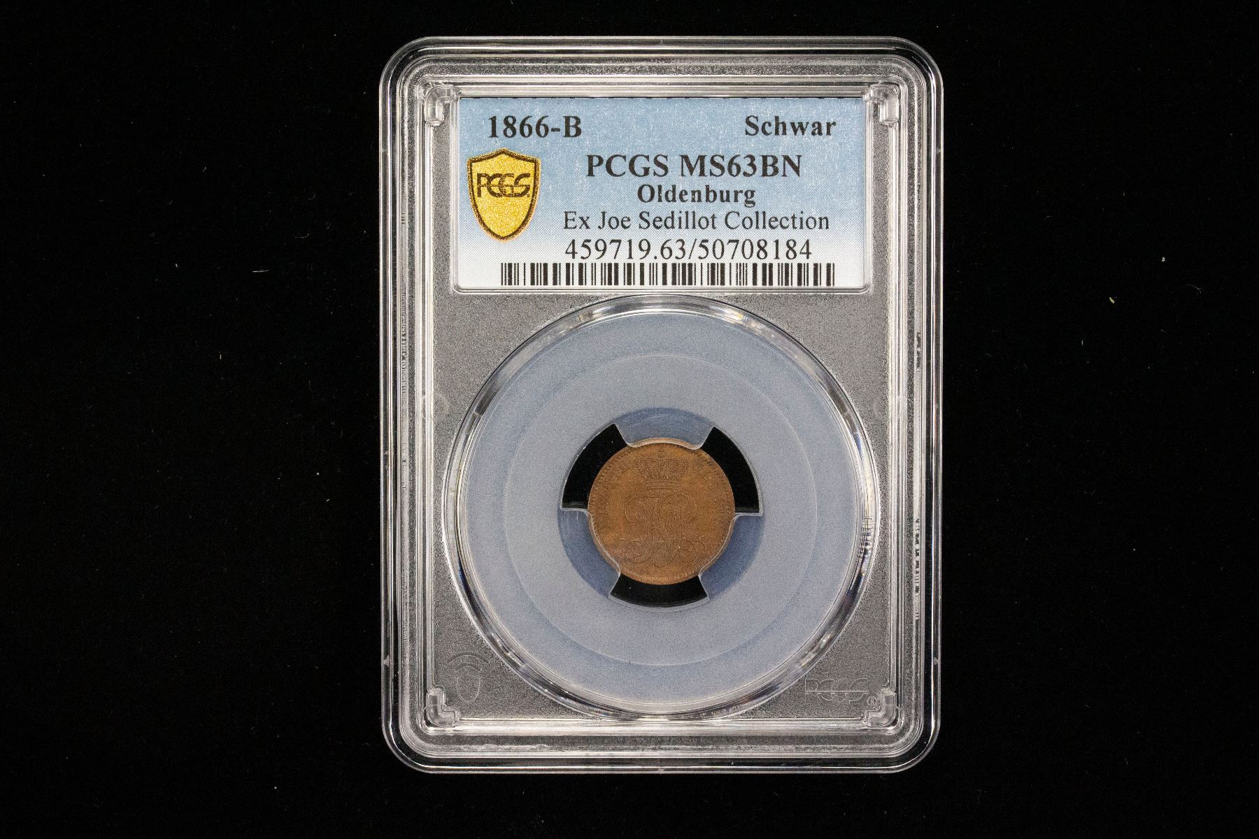 OLDENBURG: Peter II, 1853-1900, AE schwaren, 1866, KM-190, Cr-55, mint master initial B, a lovely mint state example! PCGS graded MS63 BN, ex Joe Sedillot Collection.