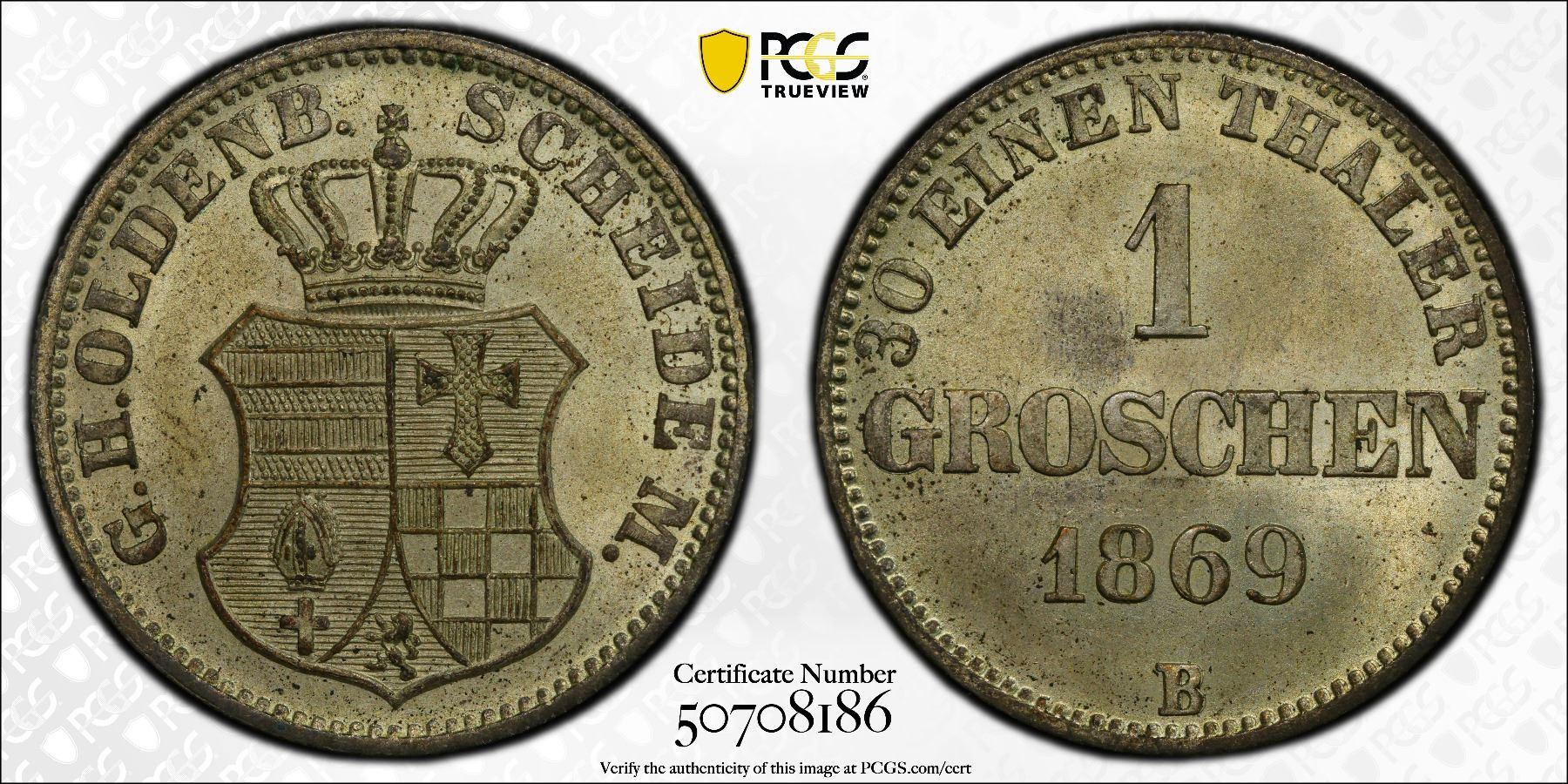 OLDENBURG: Peter II, 1853-1900, AR groschen, 1869, PCGS MS64