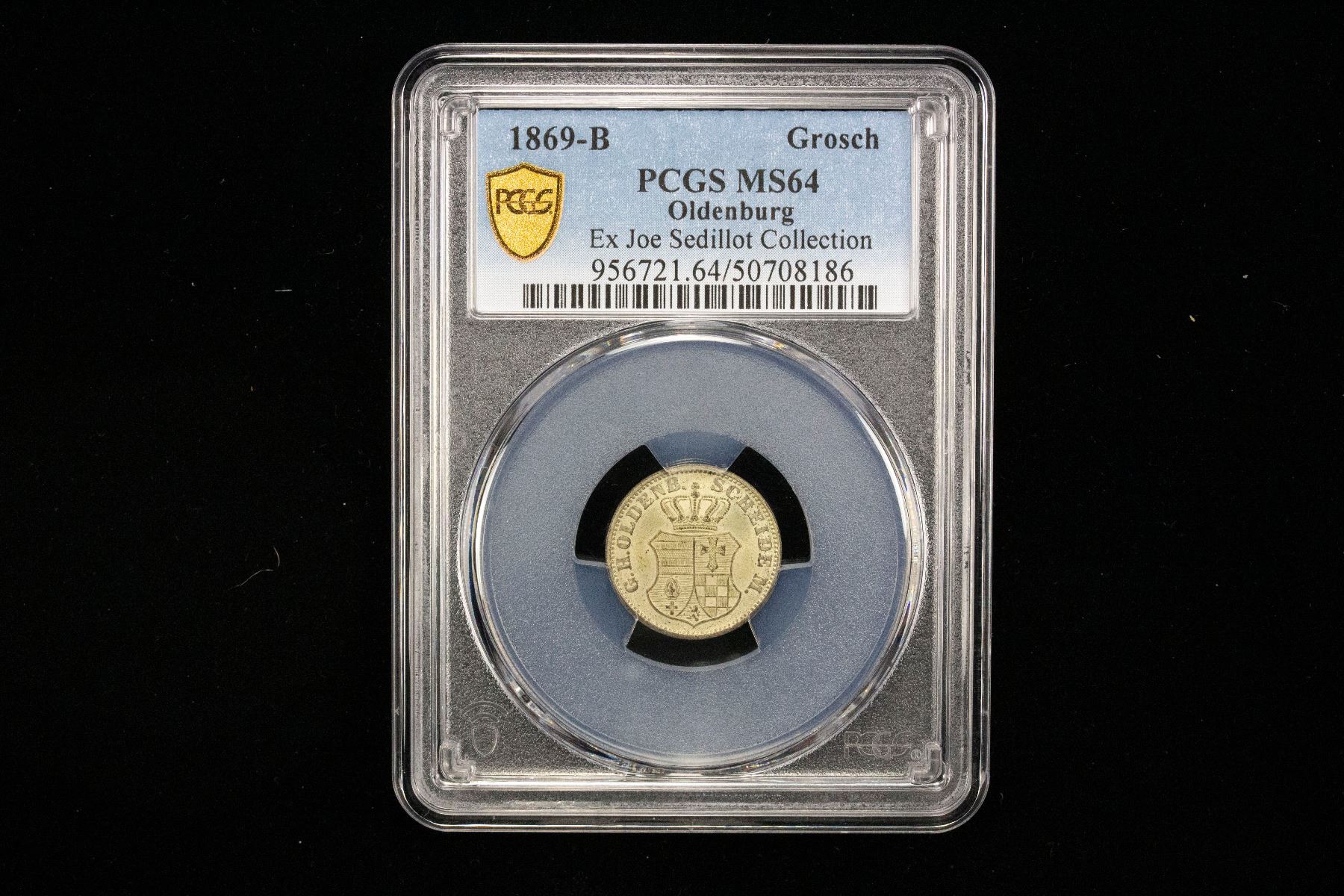OLDENBURG: Peter II, 1853-1900, AR groschen, 1869, KM-194, Cr-60a, mint master initial B, a wonderful mint state example! PCGS graded MS64, ex Joe Sedillot Collection.