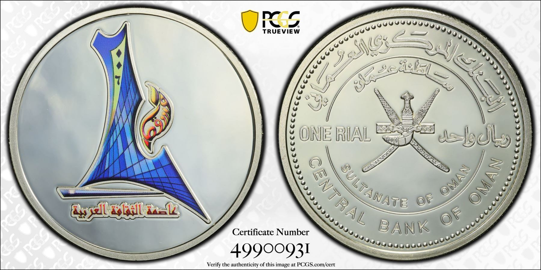 OMAN: Qaboos bin Said, 1970-2020, AR rial, 2006, Muscat the Arabic Culture Capital, colorized, a spectacular reflective proof state example! PCGS graded Proof 68 DCAM, ex Dr. Wolfgang Schuster Collection.