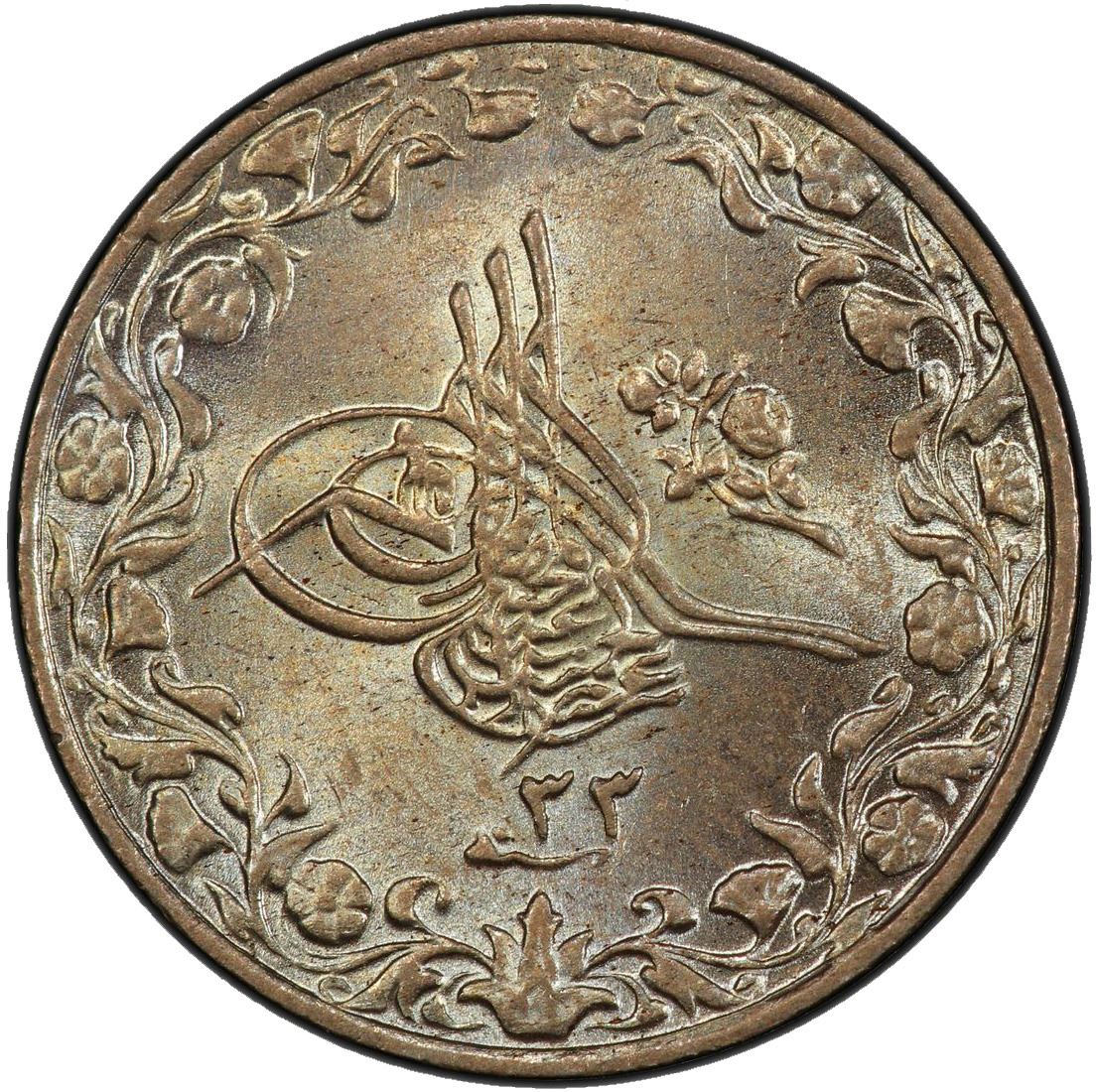 OTTOMAN - EGYPT: Abdul Hamid II, 1876-1909, 1/10 qirsh, AH1293 year 33. PCGS MS66