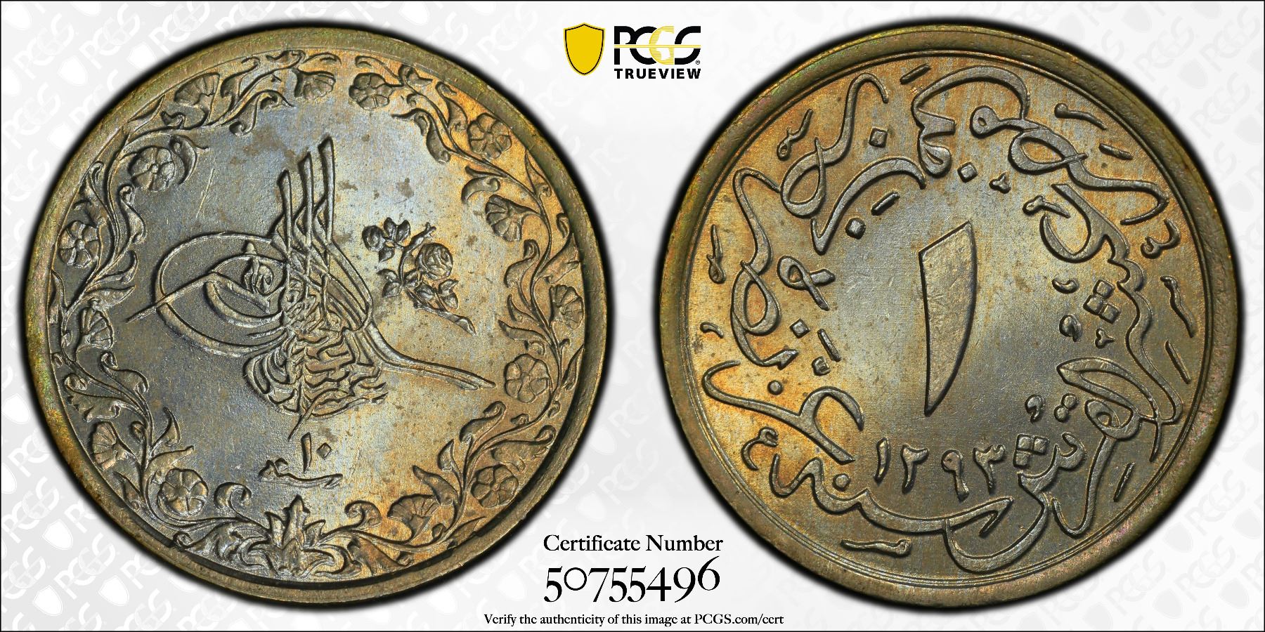 OTTOMAN: EGYPT: Abdul Hamid II, 1876-1909, 1/10 qirsh, Misr, AH1293 year 10 (1885), PCGS MS64