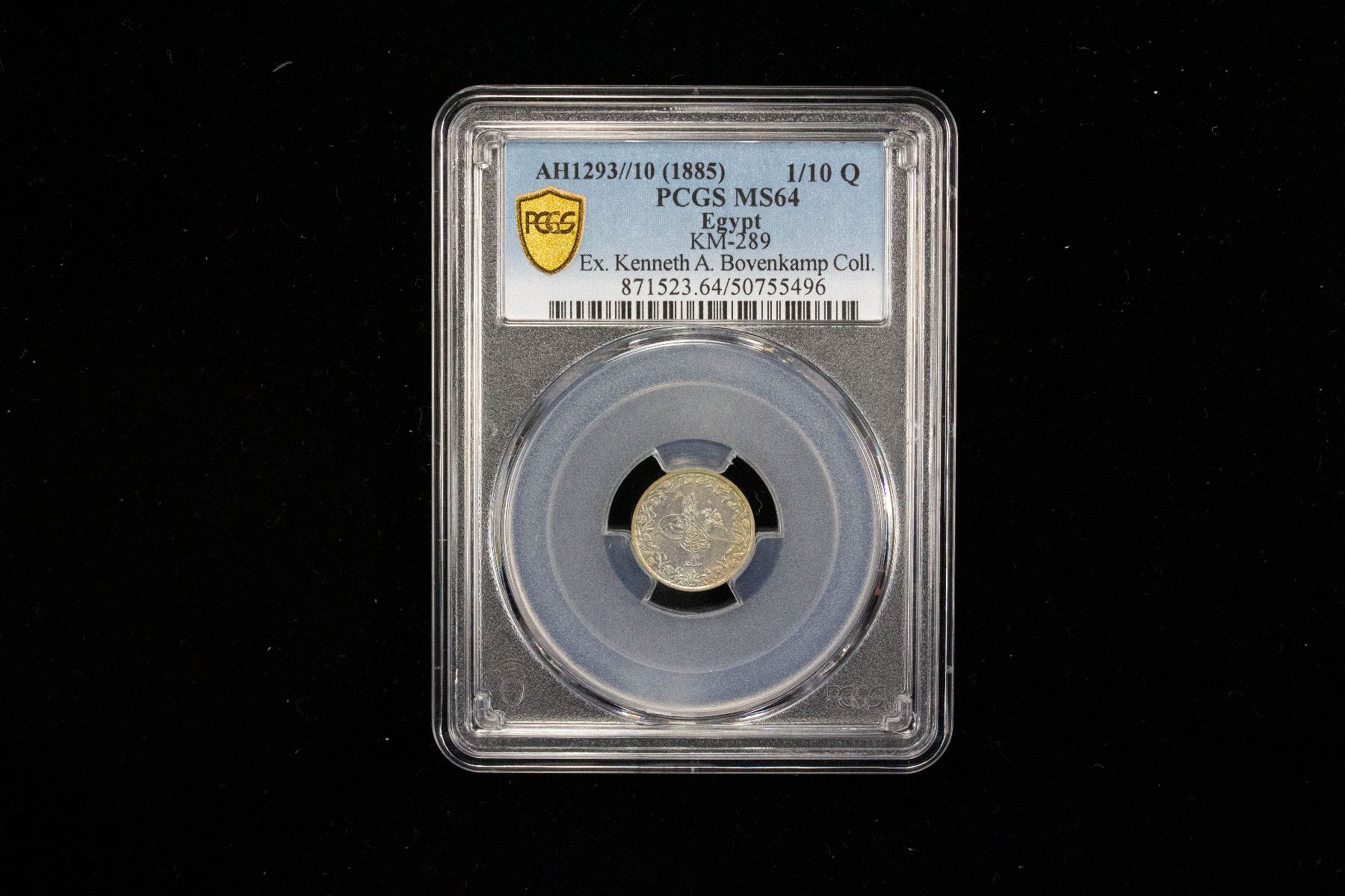 EGYPT: Abdul Hamid II, 1876-1909, 1/10 qirsh, Misr, AH1293 year 10 (1885), KM-289, a wonderful lustrous mint state example! PCGS graded MS64, ex Kenneth A. Bovenkamp Collection.