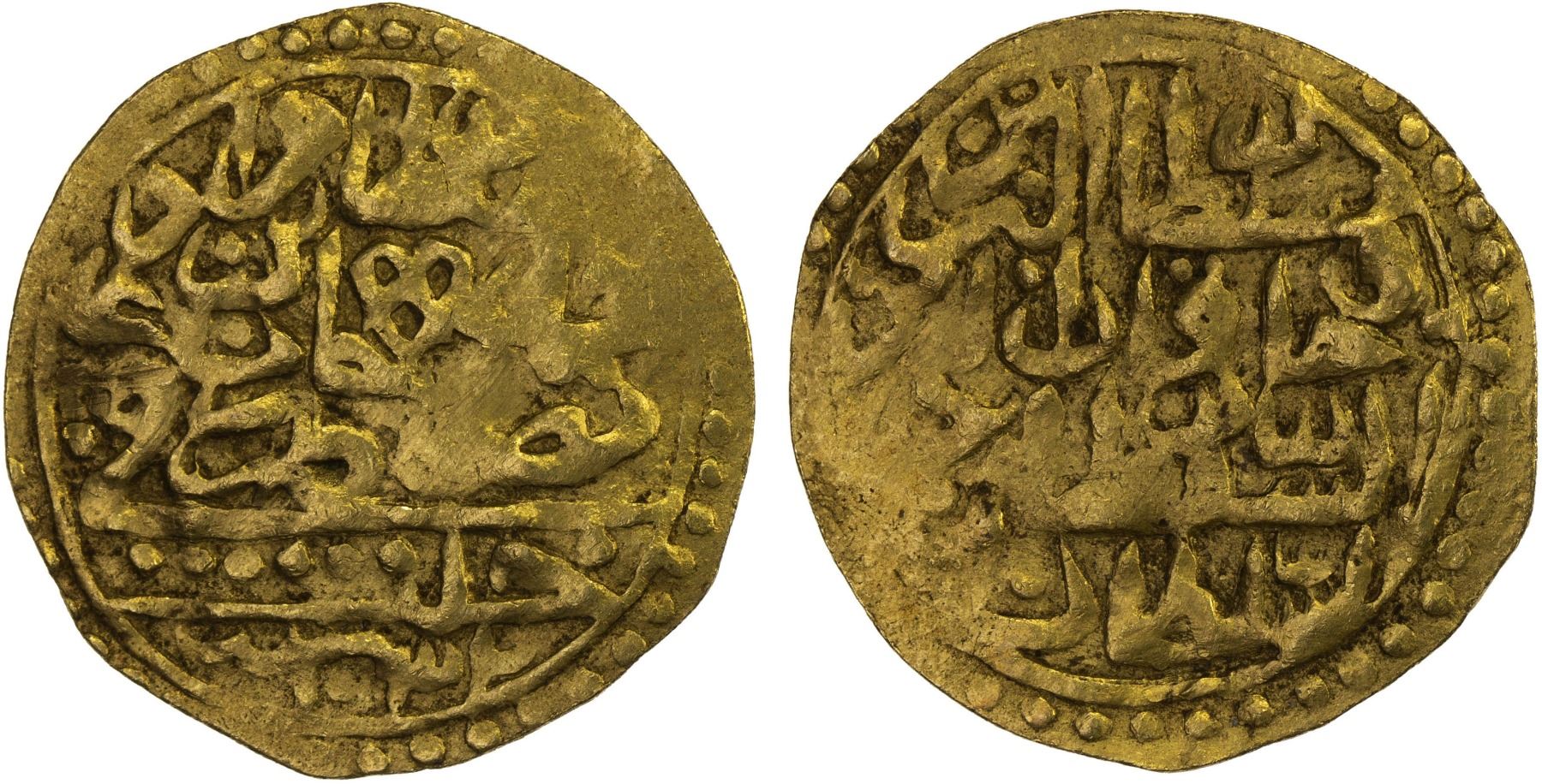 OTTOMAN EMPIRE: Murad IV, 1623-1640, AV sultani (3.40g), Halab, AH1032, A-1369, stylistically almost identical to Damali-HP-A1a, but struck from a different pair of dies surely cut by the same engraver, one small area of weakness, VF, RR.