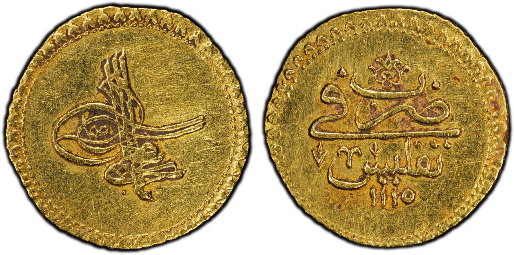 OTTOMAN: GEORGIA: Ahmad III, 1703-1730, AV ashrafi (findik) (3.42g), Tiflis, PCGS XF details