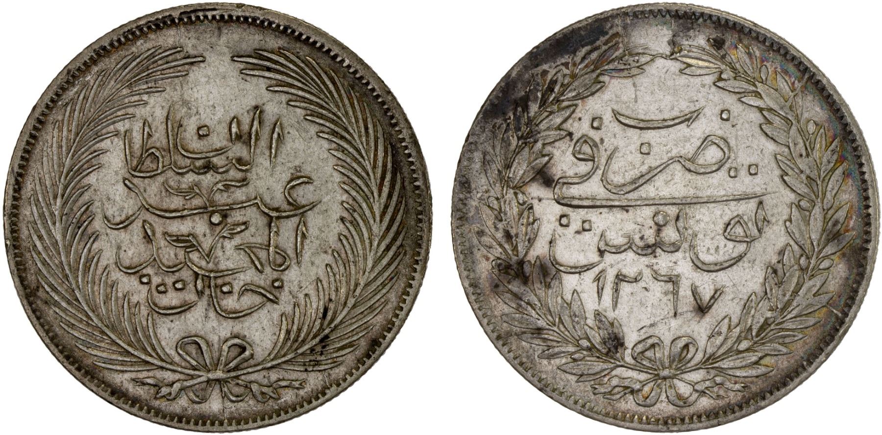 OTTOMAN TUNIS: Abdul Mejid, 1839-1861, AR 2 piastres, Tunis, AH1267, XF