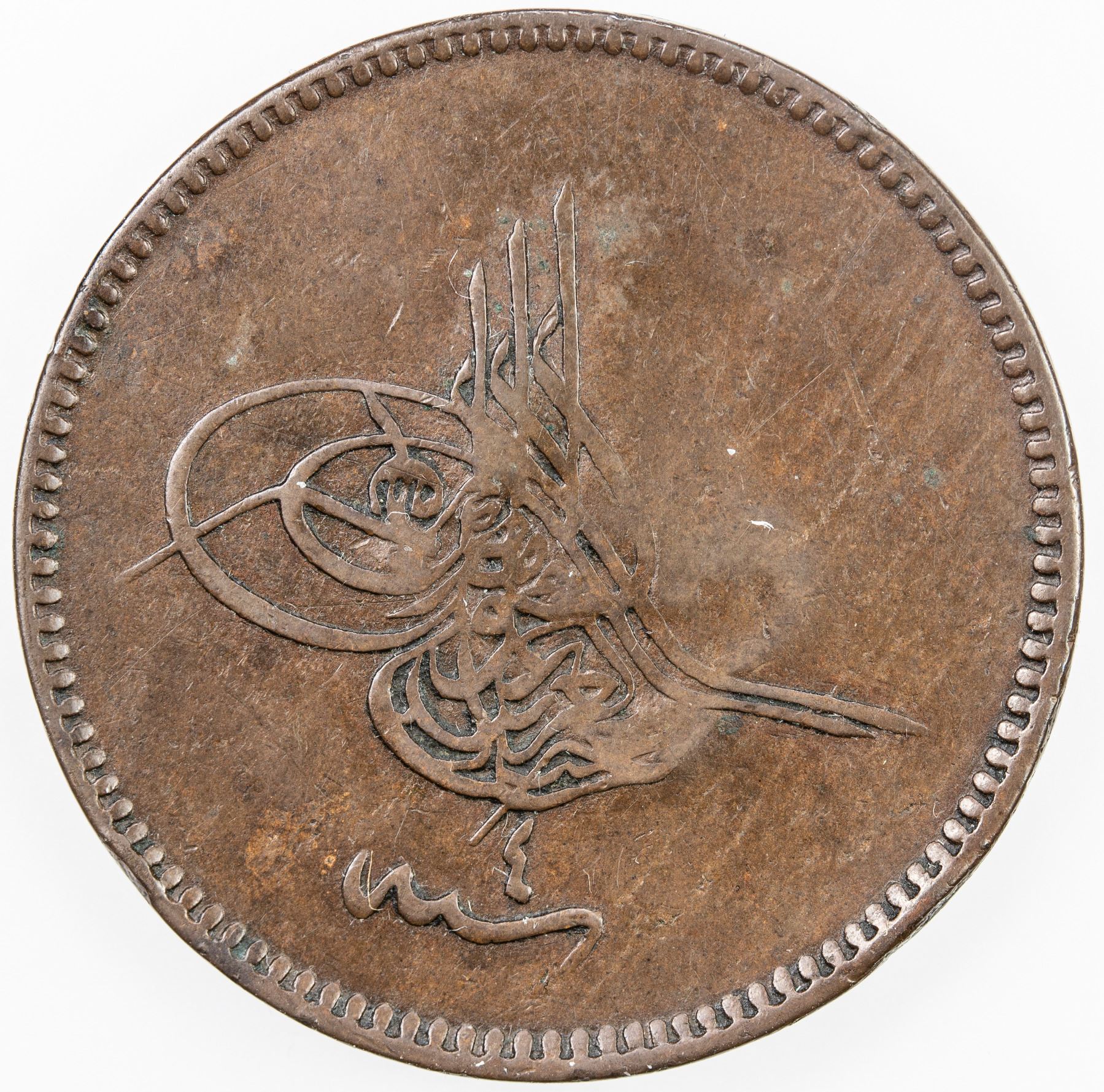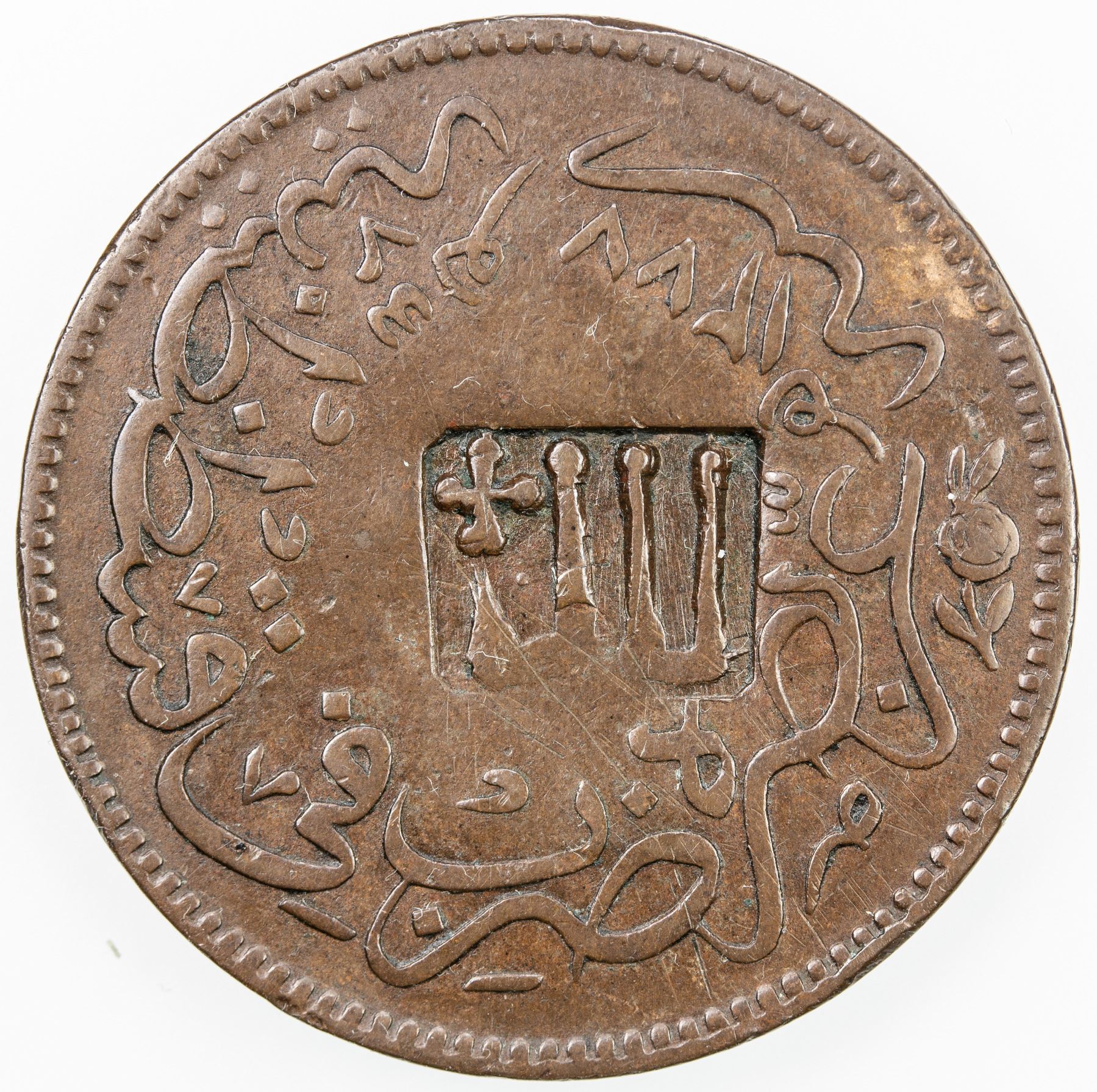 OTTOMAN - TURKEY: AE 20 para, ND, Wilski-G16-13, countermark ?G+ in rectangular incuse on reverse of 20 para AH1277 year 4, VF on lovely F-VF host, ex Hans Wilski Collection (plate coin).