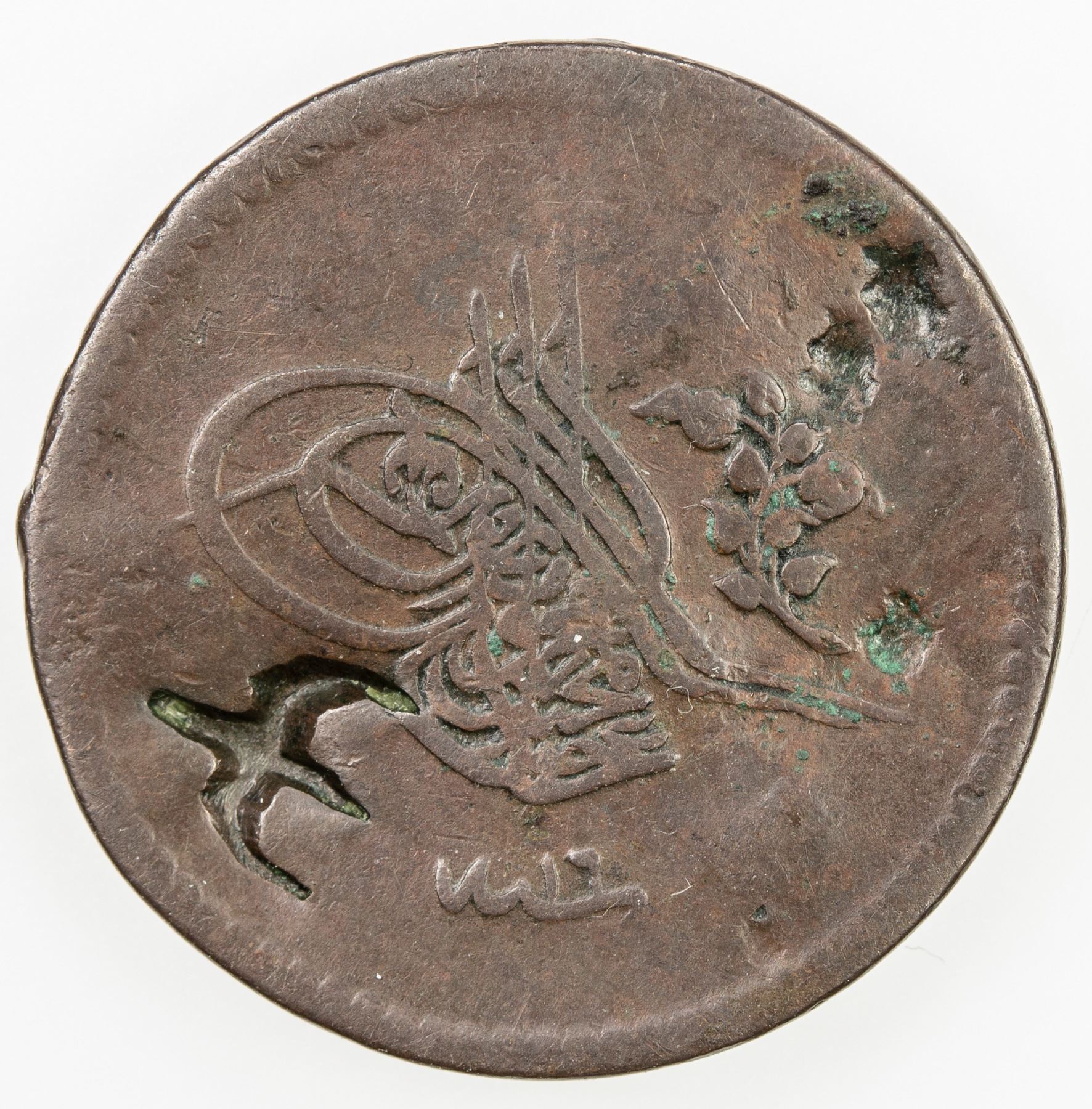 OTTOMAN - TURKEY: AE 5 para, ND, Wilski-G23-01, incuse countermark ? (or possibly a swallow), on obverse of 5 para AH1255 year 16, EF on VG host, ex Hans Wilski Collection. Wilski knew of only 3 examples with this countermark.