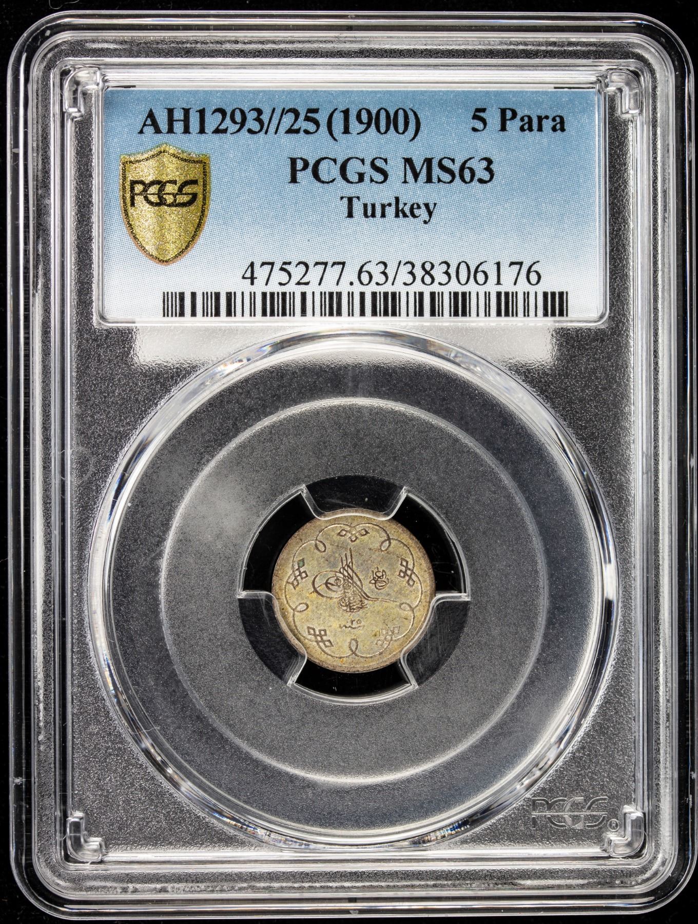 OTTOMAN - TURKEY: Abdul Hamid II, 1876-1909, BI 5 para, Kostantiniye, AH1293 year 25. PCGS MS63
