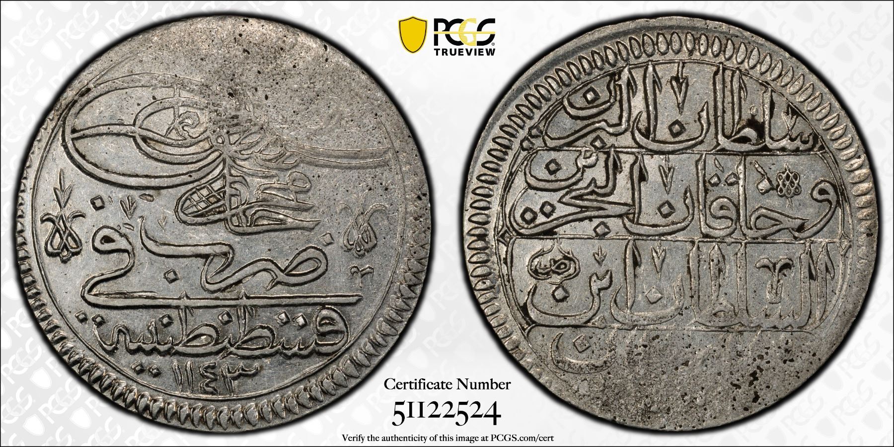 OTTOMAN TURKEY: Mahmud I, 1730-1754, AR kurush, Kostantiniye, AH1143 (1730), PCGS AU58