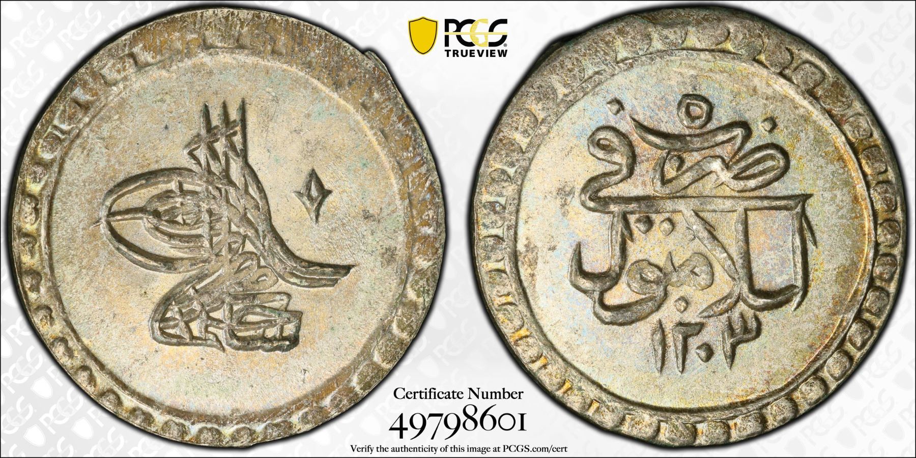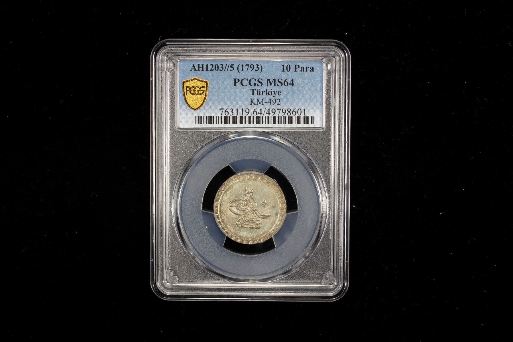 TURKEY: Selim III, 1789-1807, AR 10 para, Islambul, AH1203 year 5 (1793), KM-492, a wonderful lustrous mint state example! PCGS graded MS64. Part of a small group of 38 coins of this accessional date and regnal year purchased by Maj. Fred S. Pridmore in Cyprus in the 1960s.