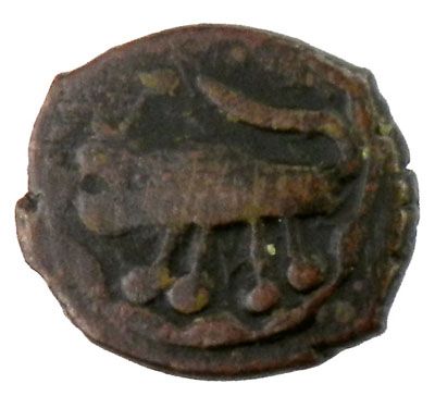 OTTOMANS IN ARABIA: Mahmud I, 1730-1754, AE fals (1.06g), NM, AH1147, A-A1129, struck in northern Arabia, sultan cited on obverse by the title al-'izzat li-mahmud, "glory to Mahmud", lion on reverse, VF, RRR, ex. Ken Bovenkamp Collection.