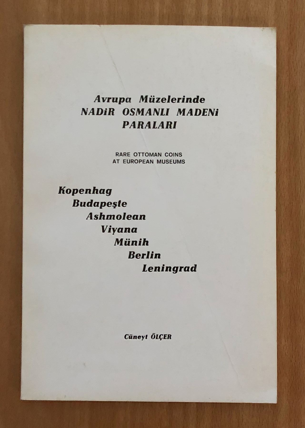 Olcer, Cuneyt, Avrupa muzelerinde Nadir Osmanli Madeni Paralari (Kopenhag, Budapeste, Ashmolean, Viyana, Munih, Berlin, Leningrad), Yenilik Basimevi, Istanbul, 1984, Olcer number 9, 96 pages, 15 plates, softcover, important collections of Ottoman coins from seven museums. Includes Selim I to Abdul Mejid. There are good indices arranged both chronologically and by mints (26), as well as separate listings for each museum. Strong in middle-period coinage. Line drawings and transliterations of legends for each coin, as well as photographic plates. Includes one Germiyan coin type.
