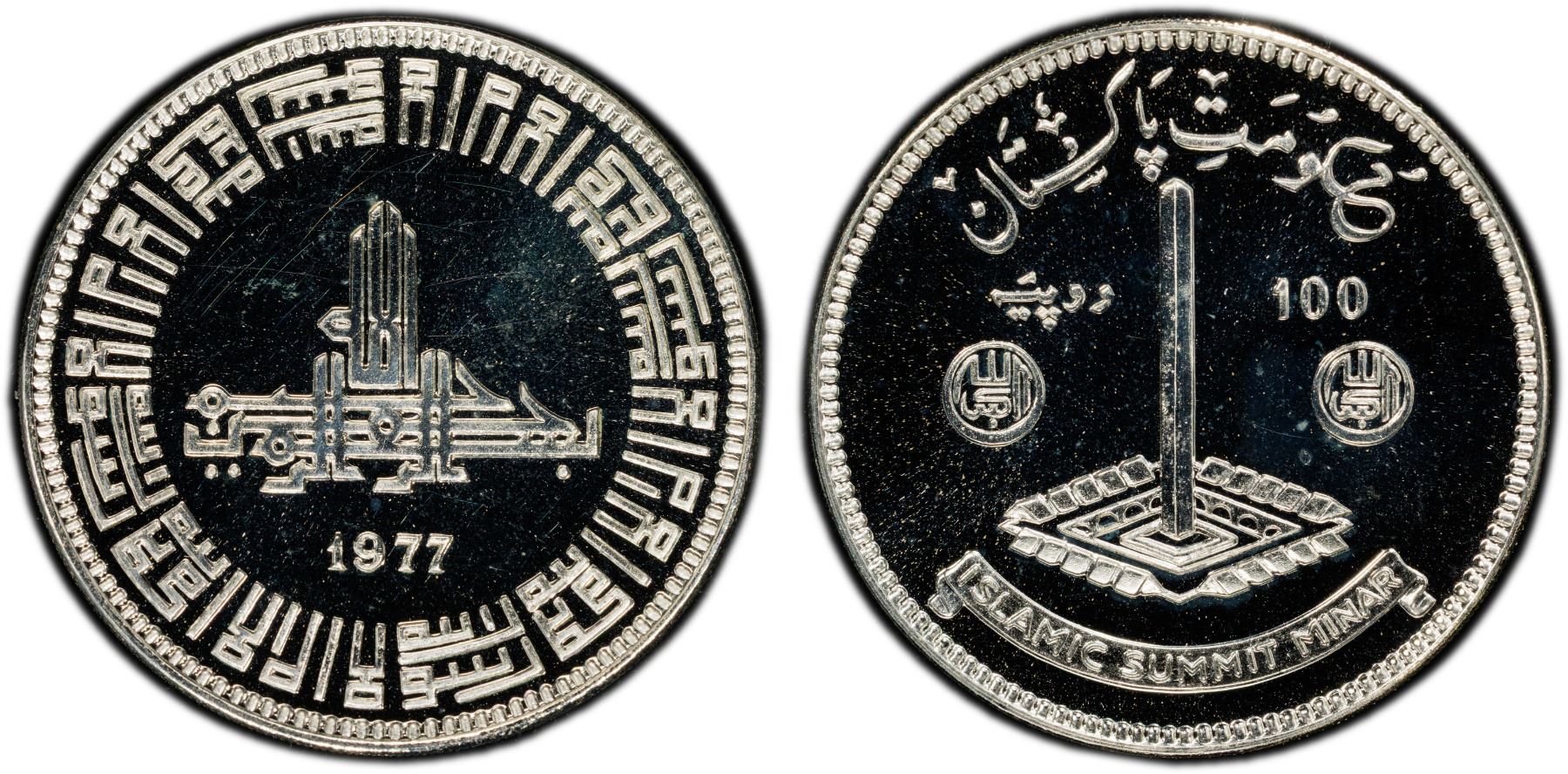 PAKISTAN: Islamic Republic, AR 100 rupees, 1977, PCGS MS67