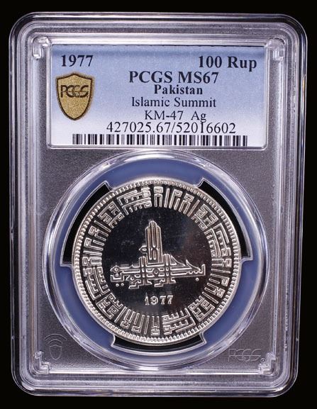 PAKISTAN: Islamic Republic, AR 100 rupees, 1977, KM-47, Islamic Summit Conference, PCGS graded MS67.