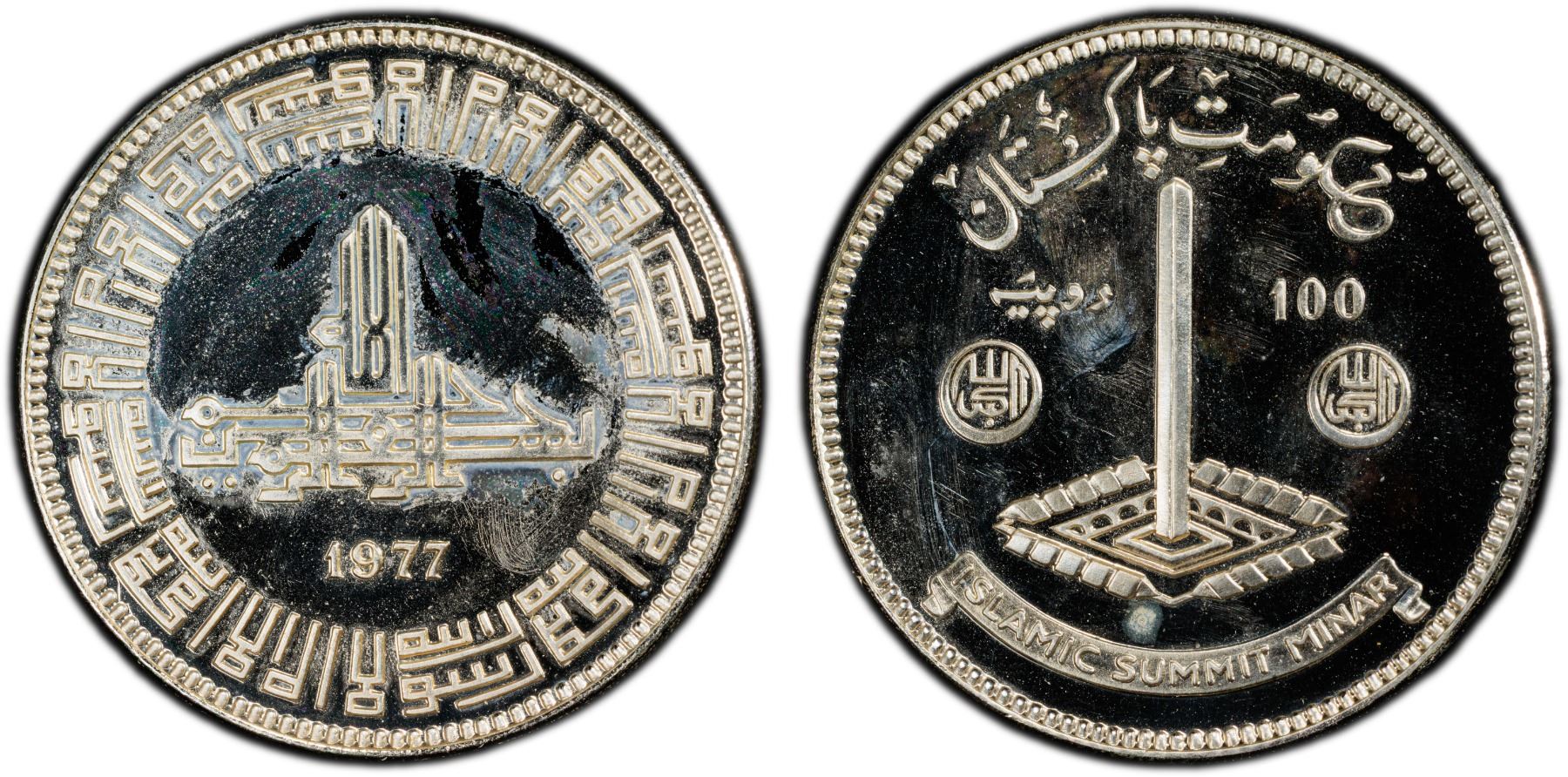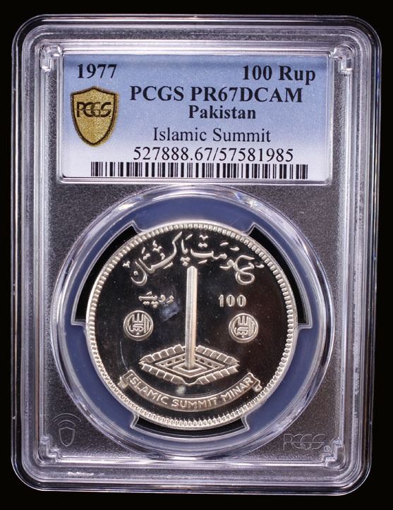 PAKISTAN: Islamic Republic, AR 100 rupees, 1977, KM-47, Islamic Summit Conference, PCGS graded PF67 Deep Cameo.
